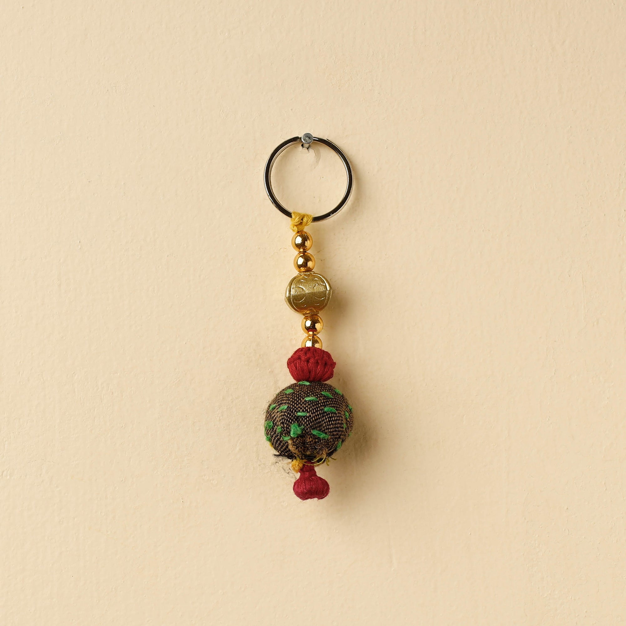 Elevate your style with our exquisite mirror and thread work brown banjara embroidery keychain handcrafted by the tribal artisans of Hampi, Karnataka. Made from cotton fabric, this keychain not only adds a touch of cultural elegance to your belongings but also keeps your keys secure in style.