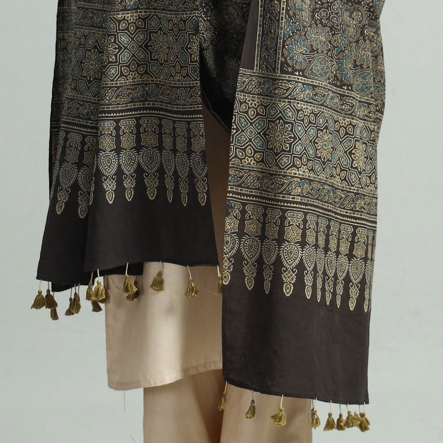 | Material | This exquisite ajrakh hand block printed cotton dupatta is crafted with the finest quality cotton fabric, ensuring a comfortable feel against your skin. Meticulously created using natural dyes through traditional ajrakh technique of hand block printing practised by the artisans in Kutch region of Gujarat. |