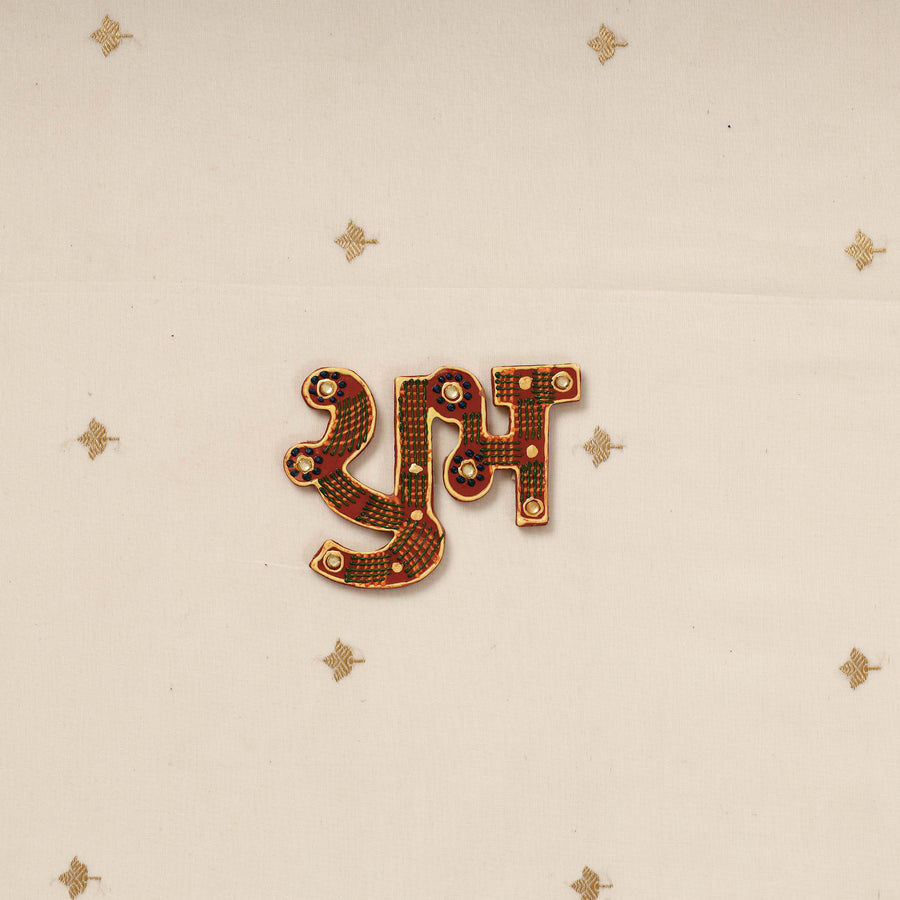 Shubh Laabh - Traditional handpainted beadwork door decor. This product is studded with beads and stones. It contains double tape on the back side to stick it over the surface. It makes your home and pooja room more beautiful and will surely be admired by your guests.