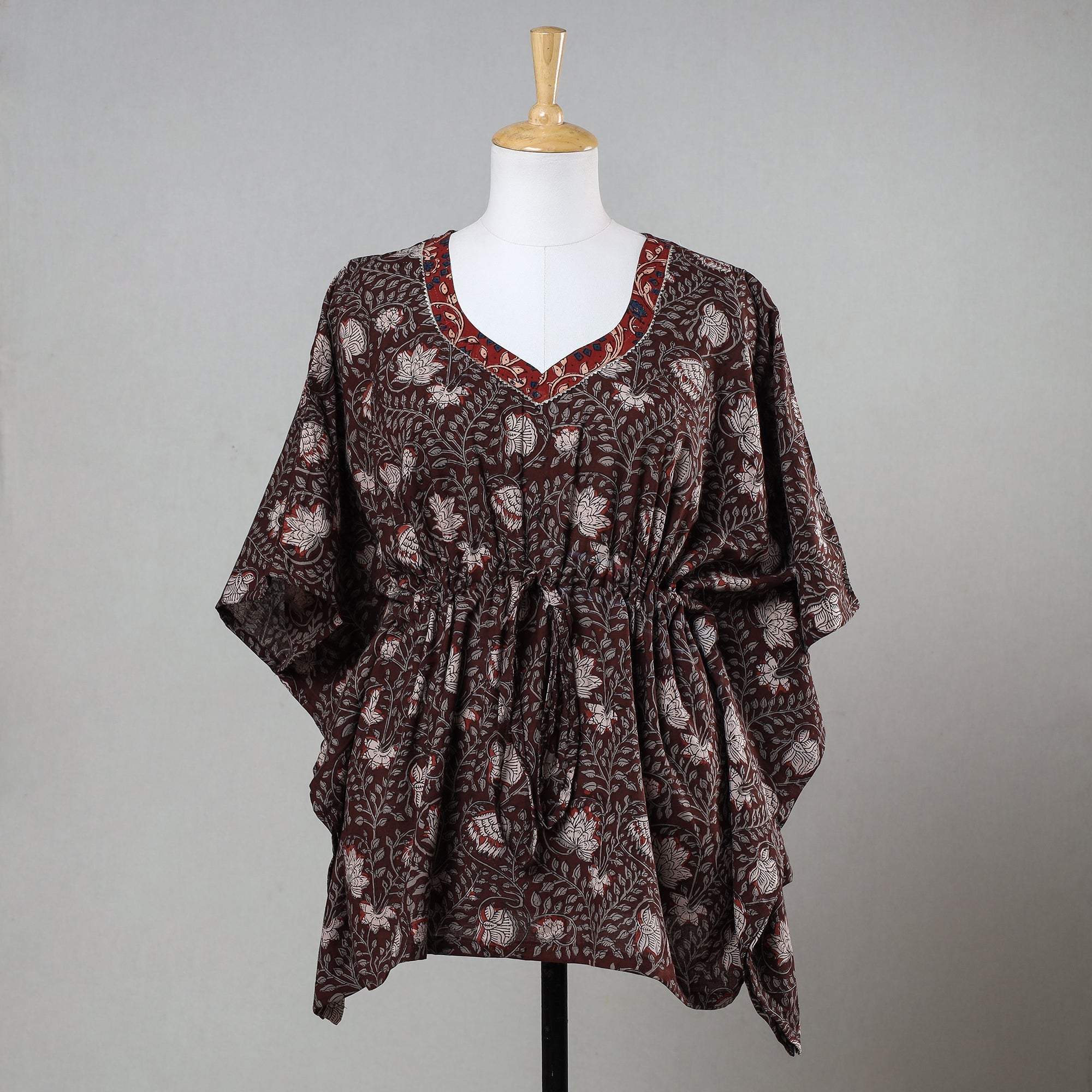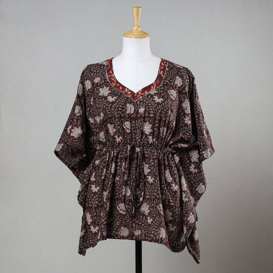 Brown - Bagru Block Printed Cotton Kaftan with Tie-Up Waist (Short)