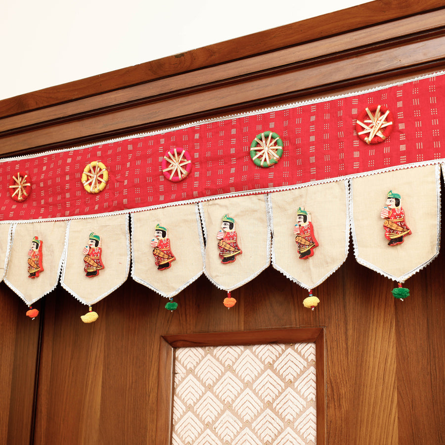 The origins of toran can be traced back to Purana (a work of Hindu mythology). Torans are used to decorate the main entrance to a dwelling. The main idea behind decorating the house is to please and attract the goddess of wealth Lakshmi. This toran is the first to greet guests.