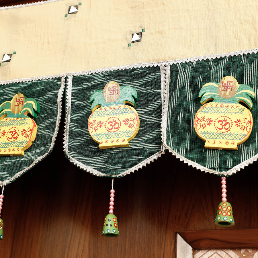 The origins of toran can be traced back to Purana (a work of Hindu mythology). Torans are used to decorate the main entrance to a dwelling. The main idea behind decorating the house is to please and attract the goddess of wealth Lakshmi. This toran is the first to greet guests.