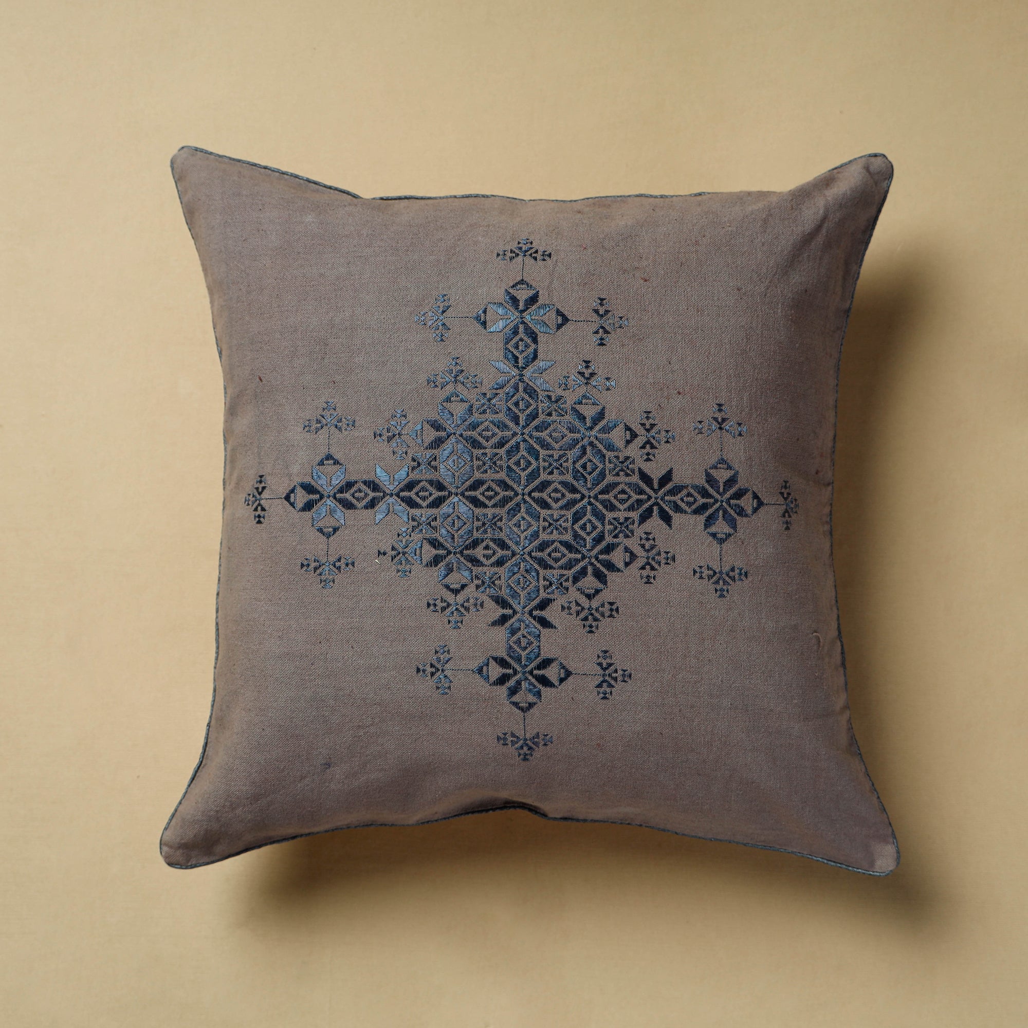 Elavate your home decor with this grey soof embroidery cotton cushion cover. Crafted from high-quality cotton, it features intricate embroidery, adding elegance to any room. This versatile cushion cover not only protects your cushions but also transforms your living space, making it cozier and more stylish. Soof embroidery is a traditional Indian art form known for its delicate, geometric patterns worked with chain stitches, often on clothing and textiles.