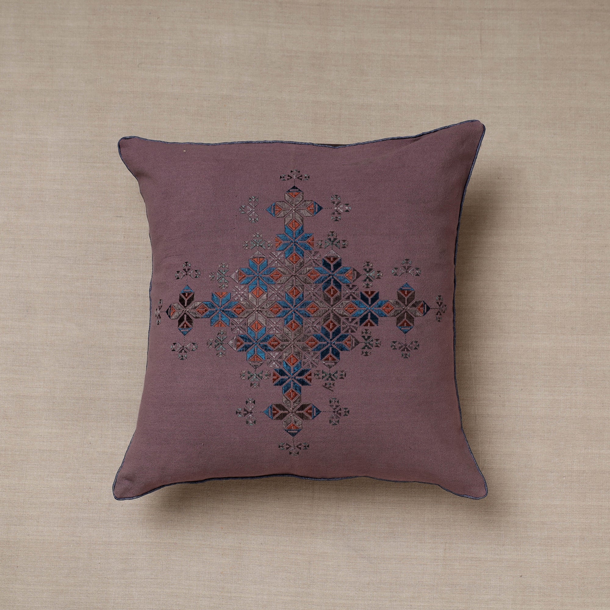 Elavate your home decor with this purple soof embroidery cotton cushion cover. Crafted from high-quality cotton, it features intricate embroidery, adding elegance to any room. This versatile cushion cover not only protects your cushions but also transforms your living space, making it cozier and more stylish. Soof embroidery is a traditional Indian art form known for its delicate, geometric patterns worked with chain stitches, often on clothing and textiles.