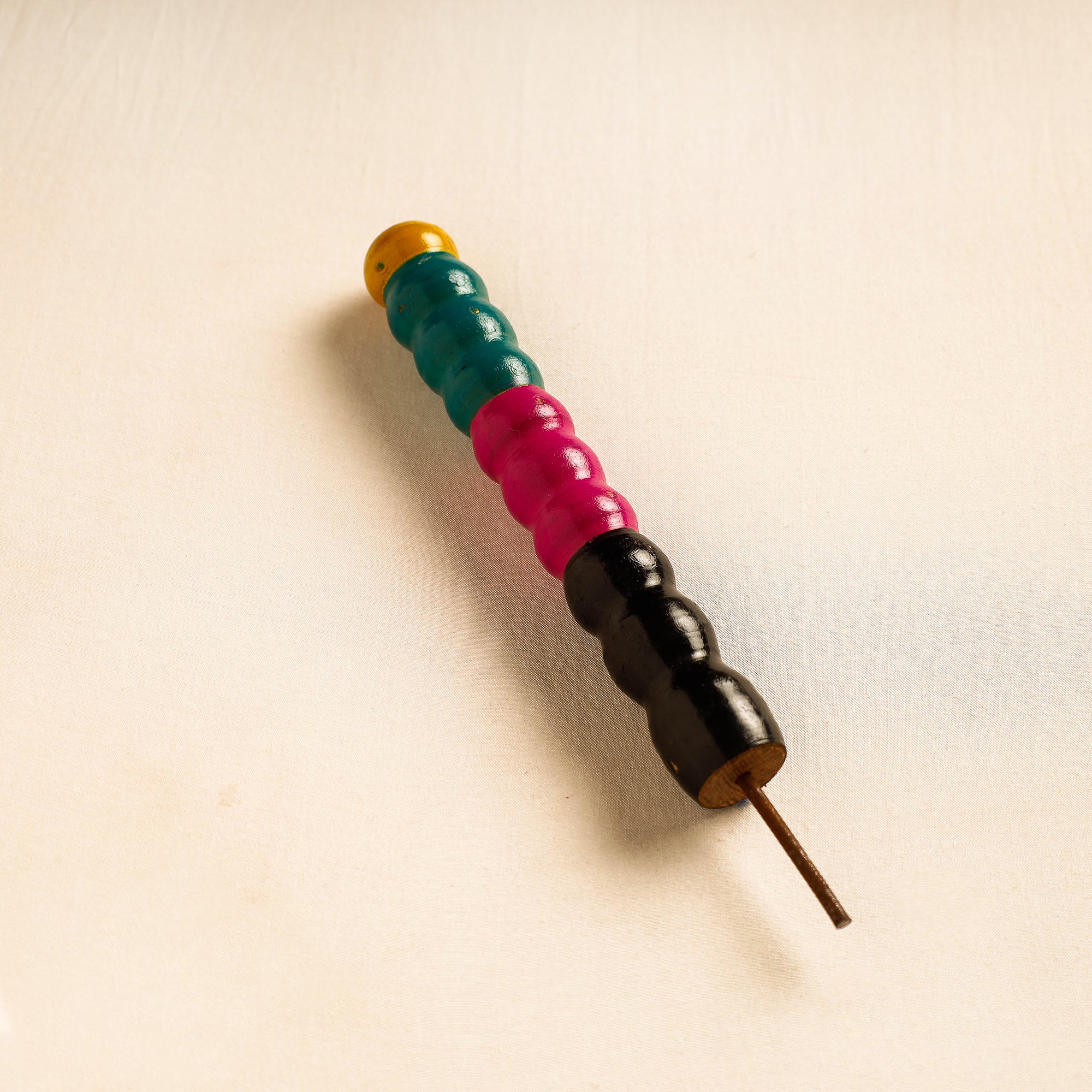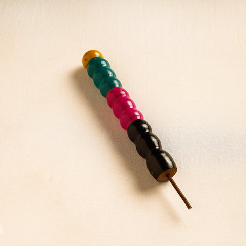 This handcrafted wooden wall hanger is made of babool wood with lacquered colours. This wall hanger meticulously handcrafted by skilled artisans from the Vadha community in villages like Nirona and Jura. They begin by selecting babool wood, which is known for its durability and strength. Layers of coloured lacquer are applied to the wood, and intricate designs and effects are chiselled to create a stunning visual appeal.