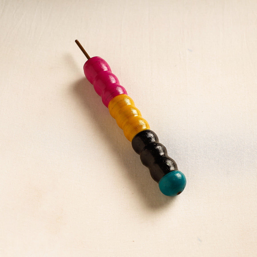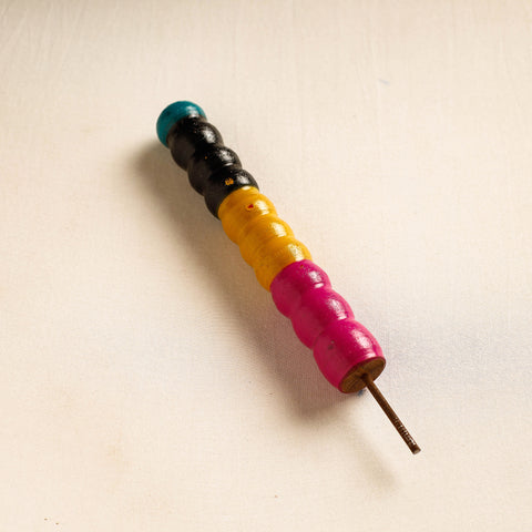 This handcrafted wooden wall hanger is made of babool wood with lacquered colours. This wall hanger meticulously handcrafted by skilled artisans from the Vadha community in villages like Nirona and Jura. They begin by selecting babool wood, which is known for its durability and strength. Layers of coloured lacquer are applied to the wood, and intricate designs and effects are chiselled to create a stunning visual appeal.