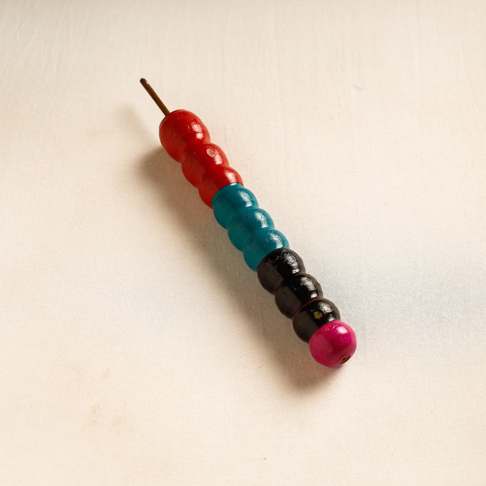 This handcrafted wooden wall hanger is made of babool wood with lacquered colours. This wall hanger meticulously handcrafted by skilled artisans from the Vadha community in villages like Nirona and Jura. They begin by selecting babool wood, which is known for its durability and strength. Layers of coloured lacquer are applied to the wood, and intricate designs and effects are chiselled to create a stunning visual appeal.