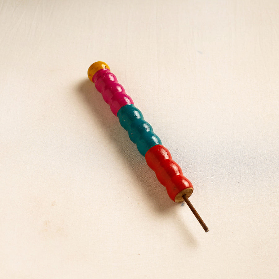 This handcrafted wooden wall hanger is made of babool wood with lacquered colours. This wall hanger meticulously handcrafted by skilled artisans from the Vadha community in villages like Nirona and Jura. They begin by selecting babool wood, which is known for its durability and strength. Layers of coloured lacquer are applied to the wood, and intricate designs and effects are chiselled to create a stunning visual appeal.