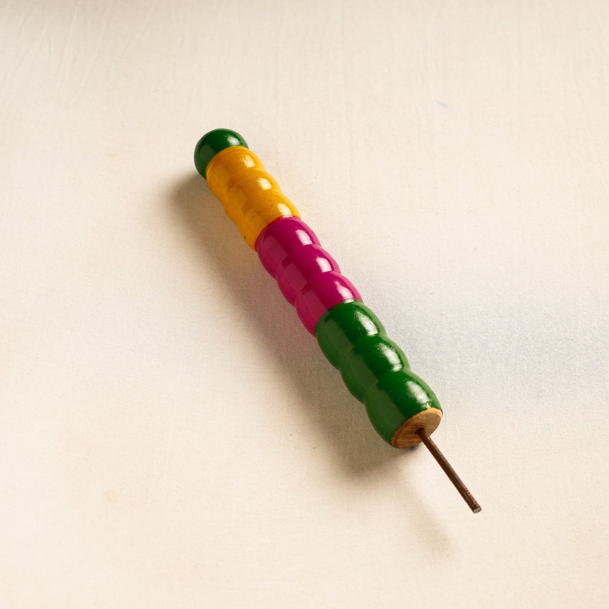 This handcrafted wooden wall hanger is made of babool wood with lacquered colours. This wall hanger meticulously handcrafted by skilled artisans from the Vadha community in villages like Nirona and Jura. They begin by selecting babool wood, which is known for its durability and strength. Layers of coloured lacquer are applied to the wood, and intricate designs and effects are chiselled to create a stunning visual appeal.