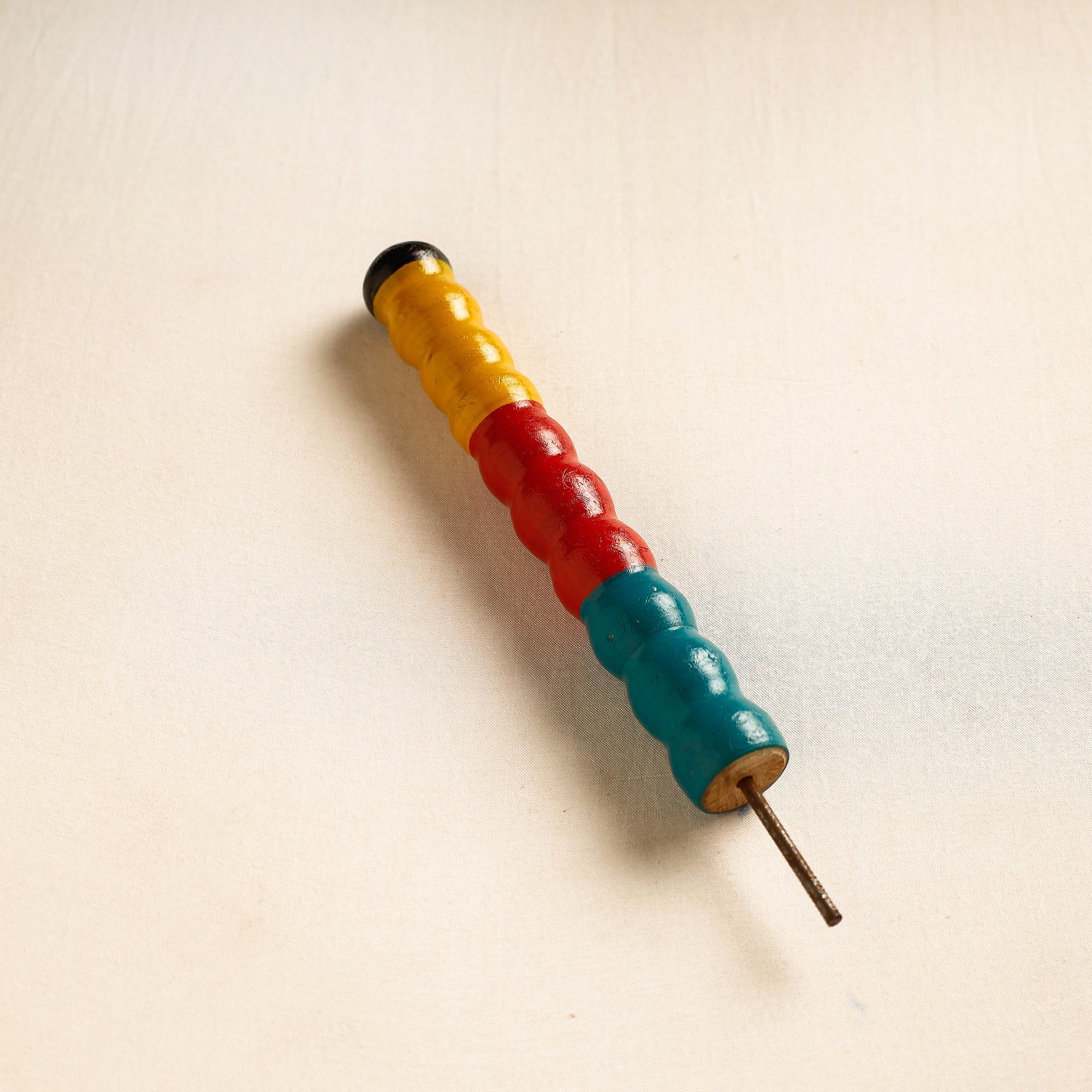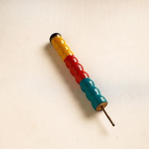 This handcrafted wooden wall hanger is made of babool wood with lacquered colours. This wall hanger meticulously handcrafted by skilled artisans from the Vadha community in villages like Nirona and Jura. They begin by selecting babool wood, which is known for its durability and strength. Layers of coloured lacquer are applied to the wood, and intricate designs and effects are chiselled to create a stunning visual appeal.