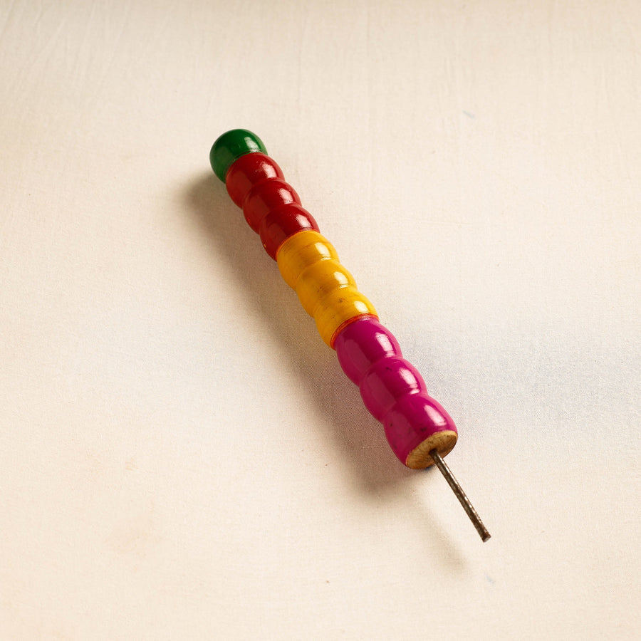 This handcrafted wooden wall hanger is made of babool wood with lacquered colours. This wall hanger meticulously handcrafted by skilled artisans from the Vadha community in villages like Nirona and Jura. They begin by selecting babool wood, which is known for its durability and strength. Layers of coloured lacquer are applied to the wood, and intricate designs and effects are chiselled to create a stunning visual appeal.