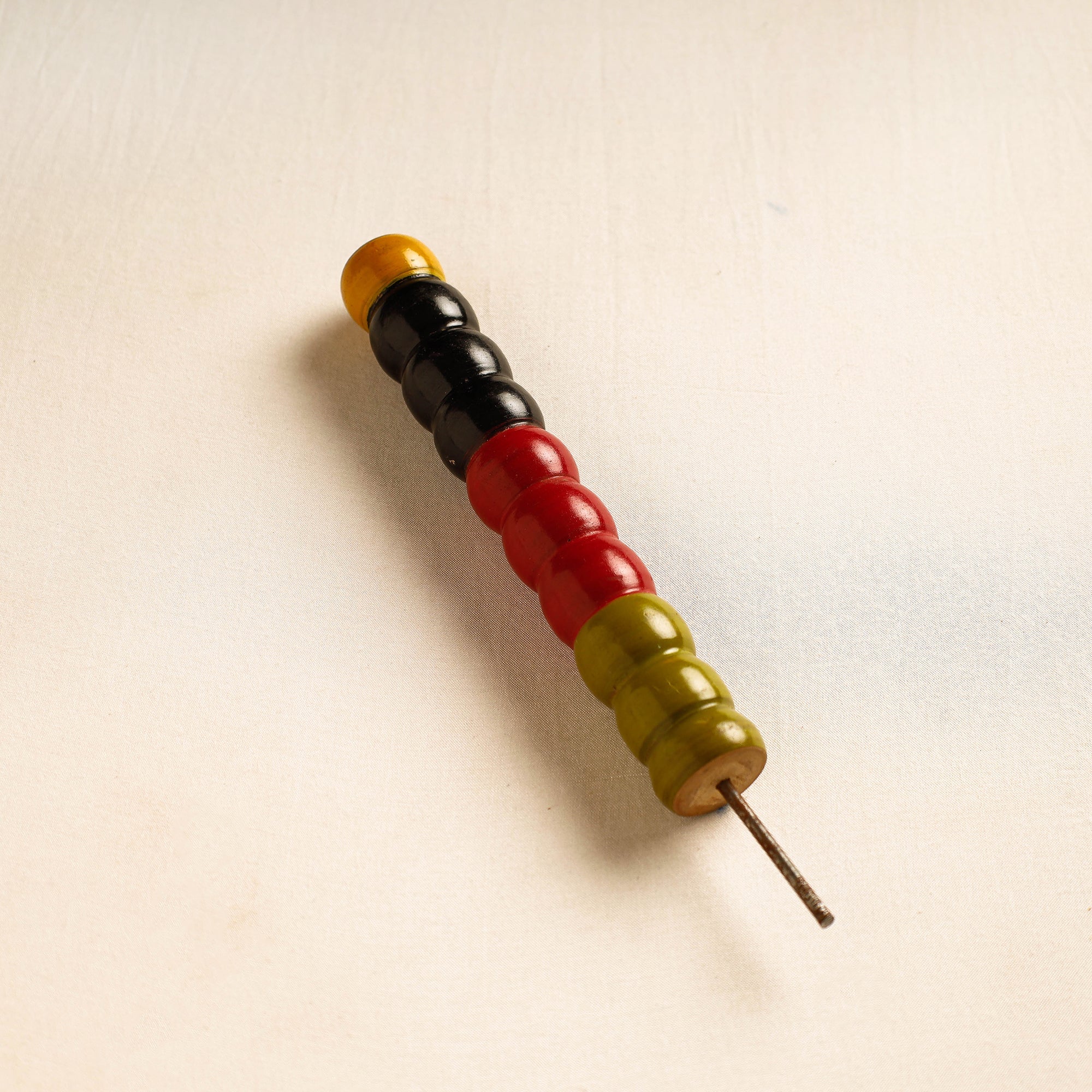 This handcrafted wooden wall hanger is made of babool wood with lacquered colours. This wall hanger meticulously handcrafted by skilled artisans from the Vadha community in villages like Nirona and Jura. They begin by selecting babool wood, which is known for its durability and strength. Layers of coloured lacquer are applied to the wood, and intricate designs and effects are chiselled to create a stunning visual appeal.