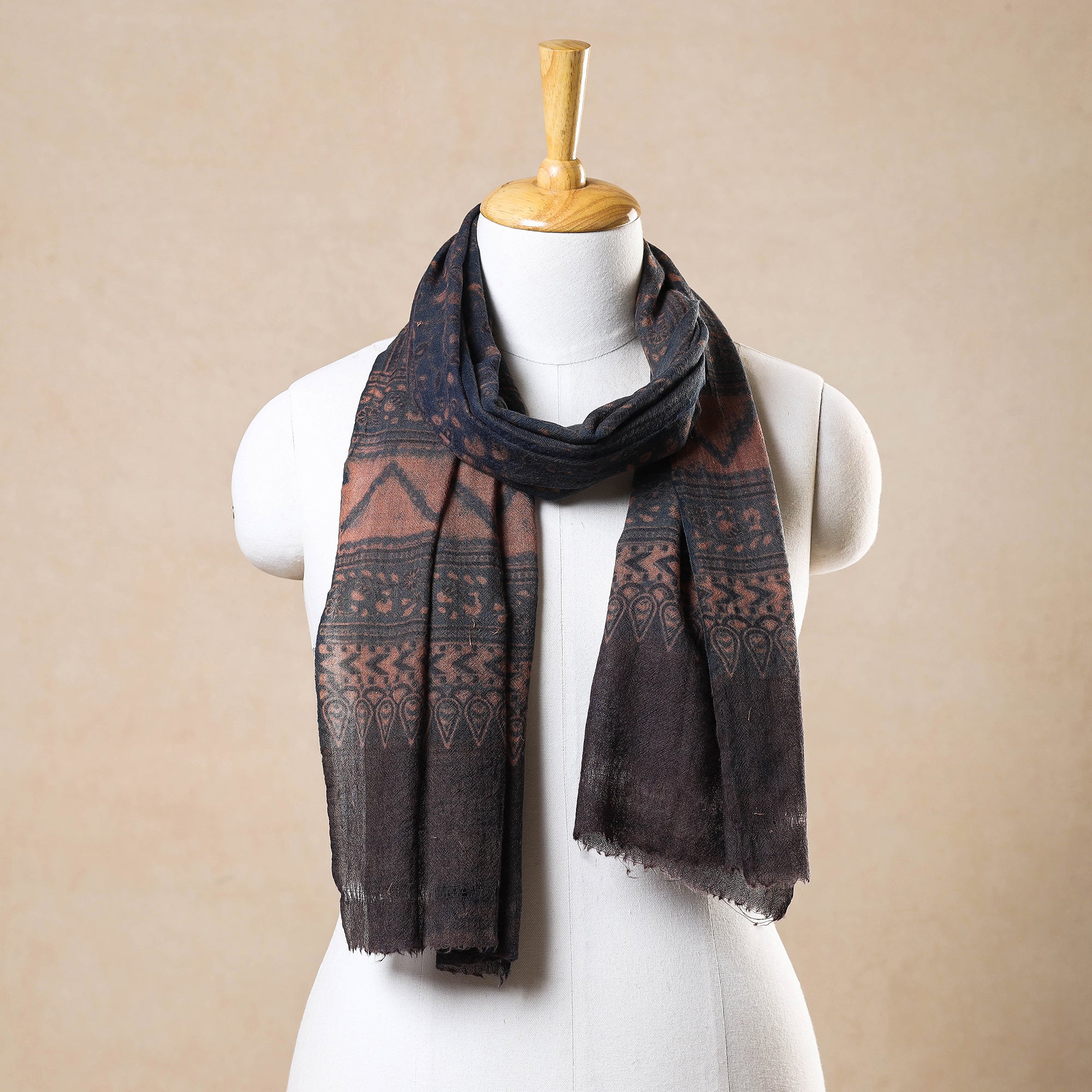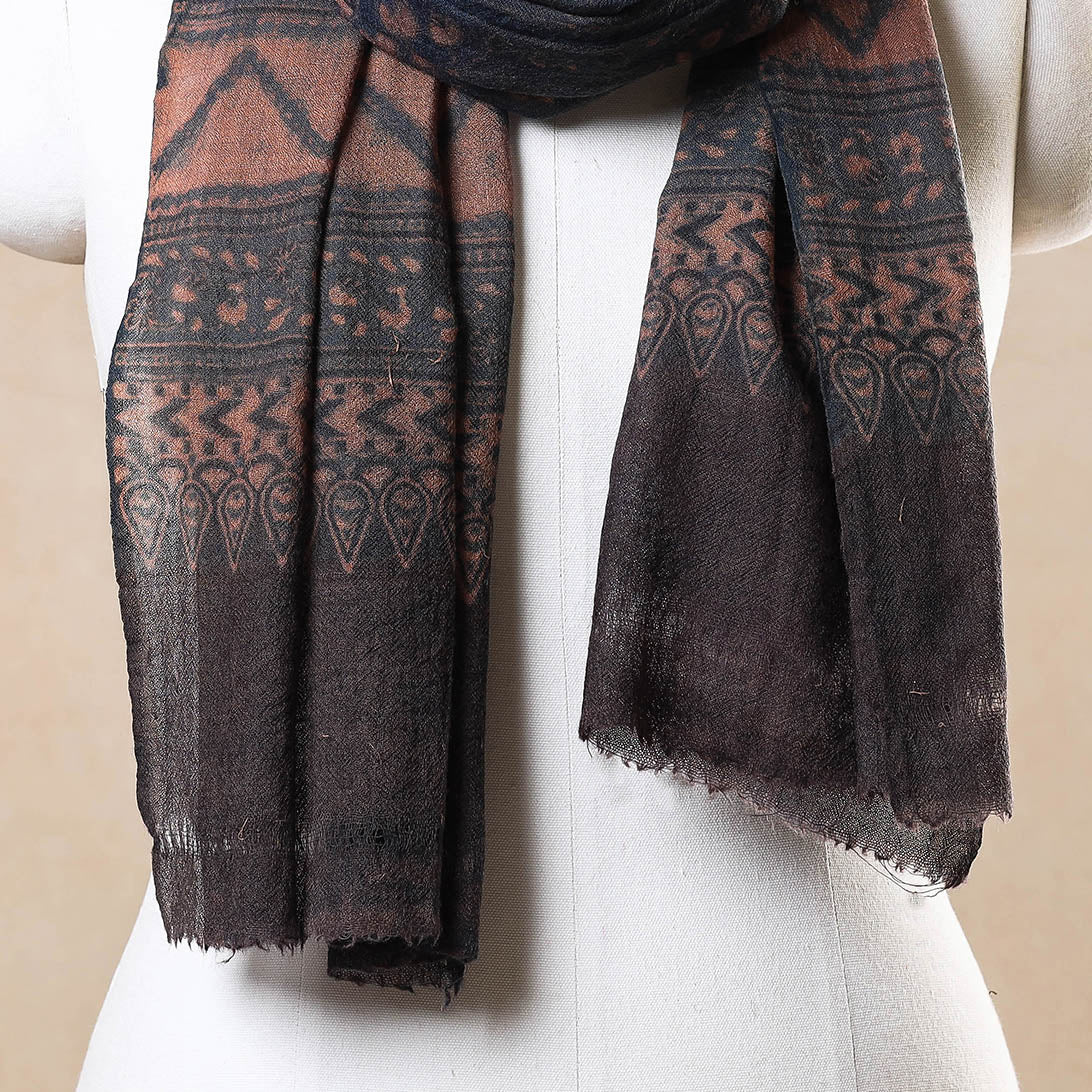Elevate your style with this fine quality blue ajrakh hand block printed pure wool stole. This exquisite stole is made using natural dyes through the traditional techniques of hand block printing by skilled artisans in the Kutch region of Gujarat. The pure wool construction offers exceptional warmth and softness, making it perfect for cold weather. This exquisite stole can elevate any outfit. It's versatile, suitable for both formal and casual occasions, adding a touch of traditional Indian artistry to your style.