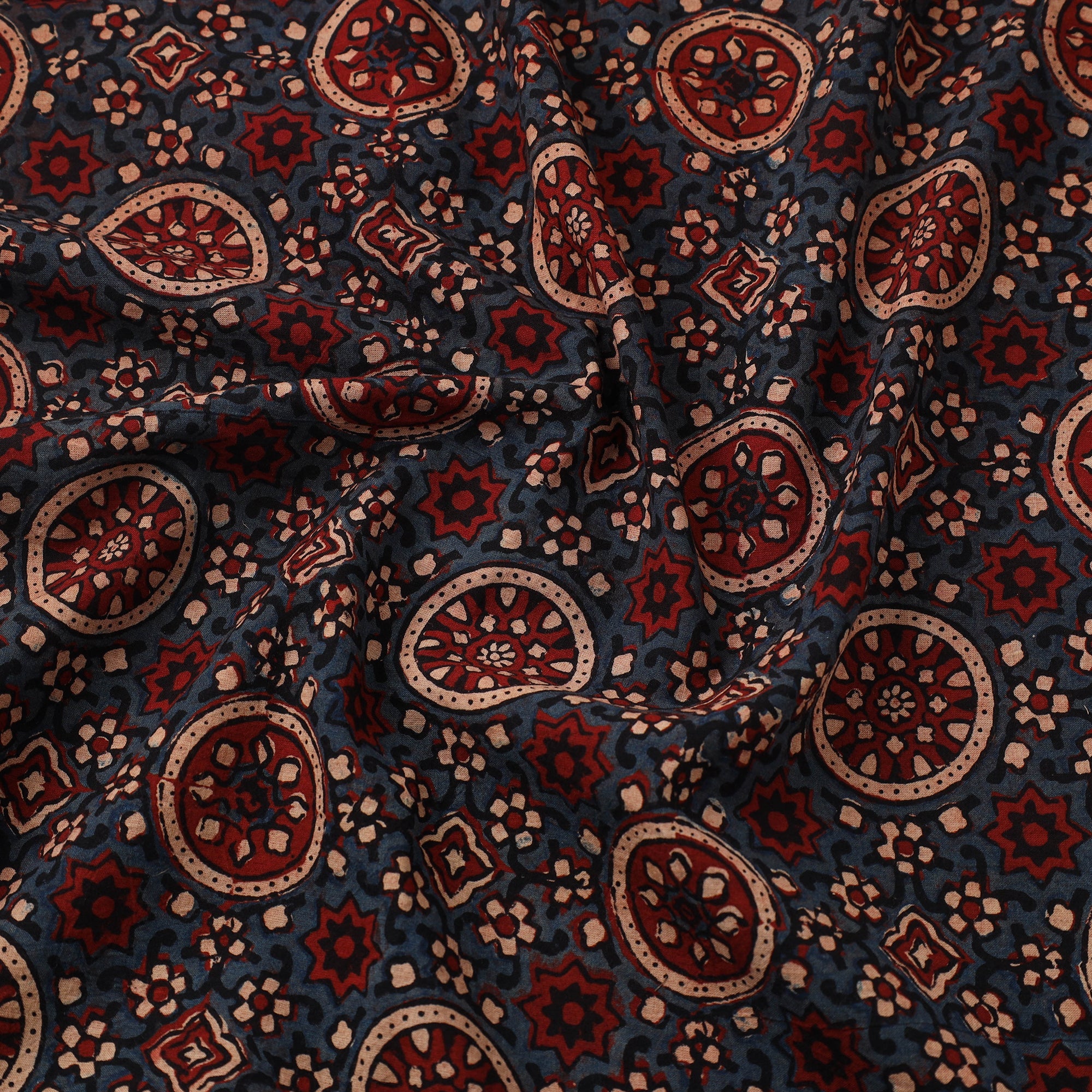 Blue Block printed cotton ajrakh fabric, meticulously crafted by expert artisans in Gujarat’s Kutch region. Made using natural dyes, this eco-friendly fabric preserves a 4,500-year-old tradition of resist block printing. This exquisite fabric is perfect for custom outfits, upholstery, and creative projects, seamlessly blending cultural heritage with sustainability.