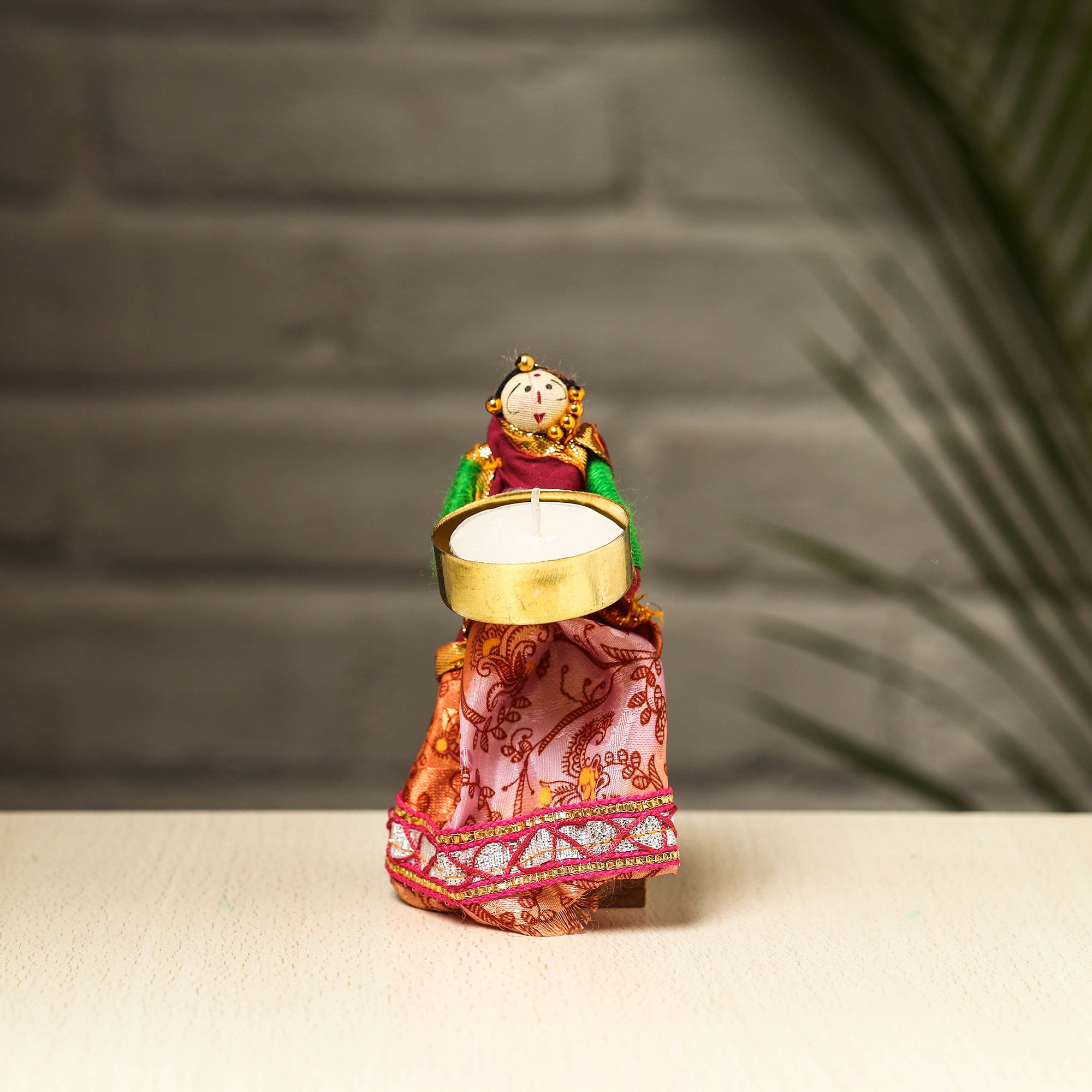 Elevate your decor with our exquisite Rajasthani puppet couple tealight candle holders. Meticulously handcrafted from wood, adorned with vibrant cotton fabric, and embellished with intricate gota patti work, these holders add a touch of Rajasthan's rich heritage to your home. Perfect for creating a warm, inviting ambiance, they're a charming addition to any space and make for a unique gifting option.
