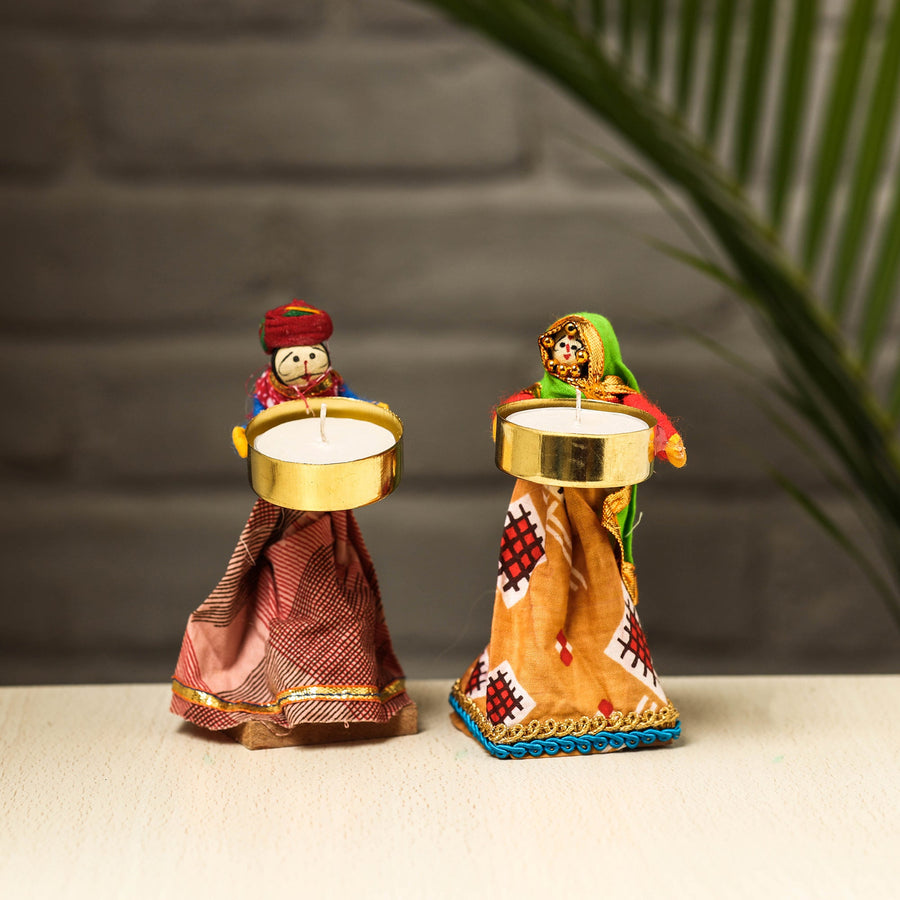 Rajasthani Puppet Couple Handmade Tealight Candle Holders (Set of 2)