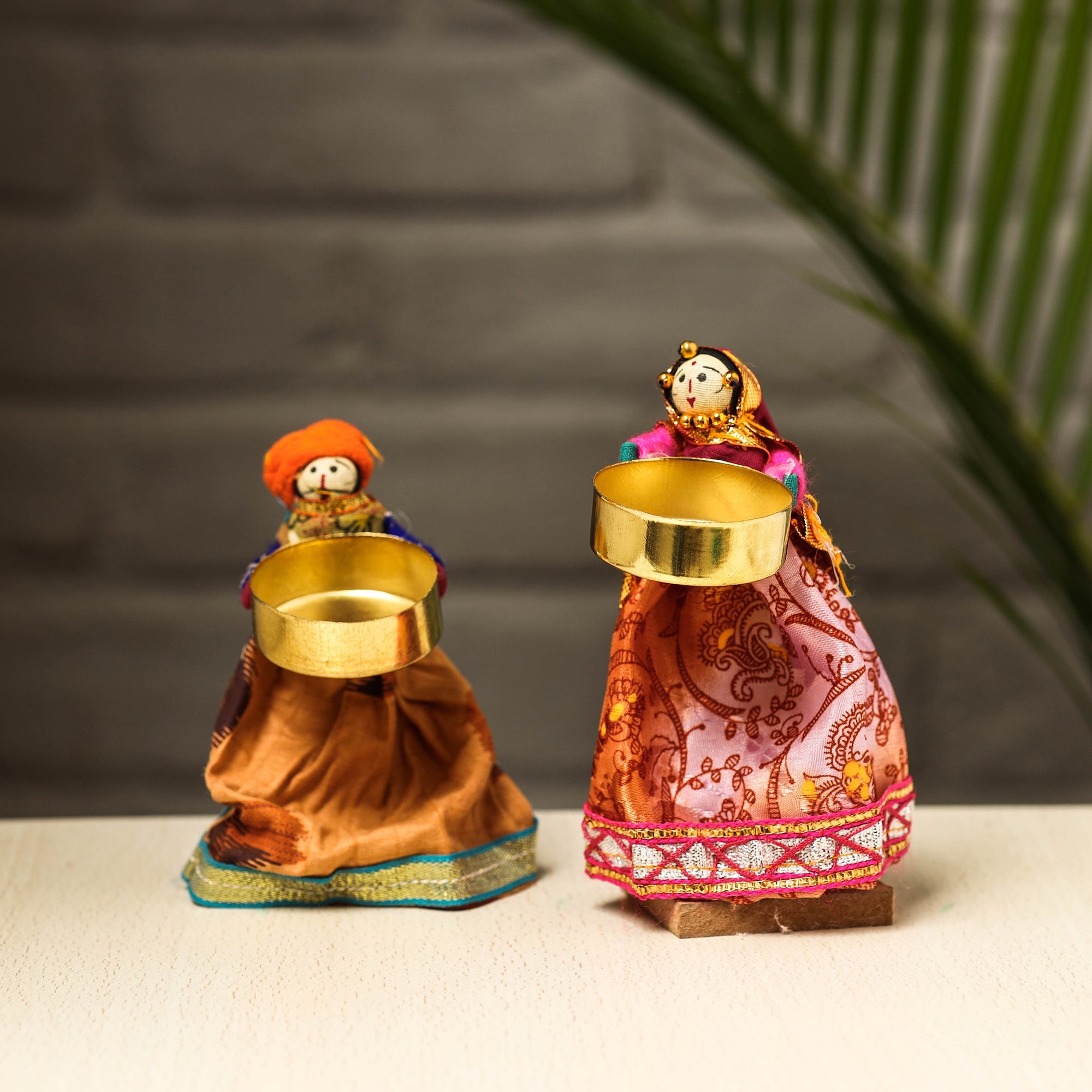 Rajasthani Puppet Couple Handmade Tealight Candle Holders (Set of 2)