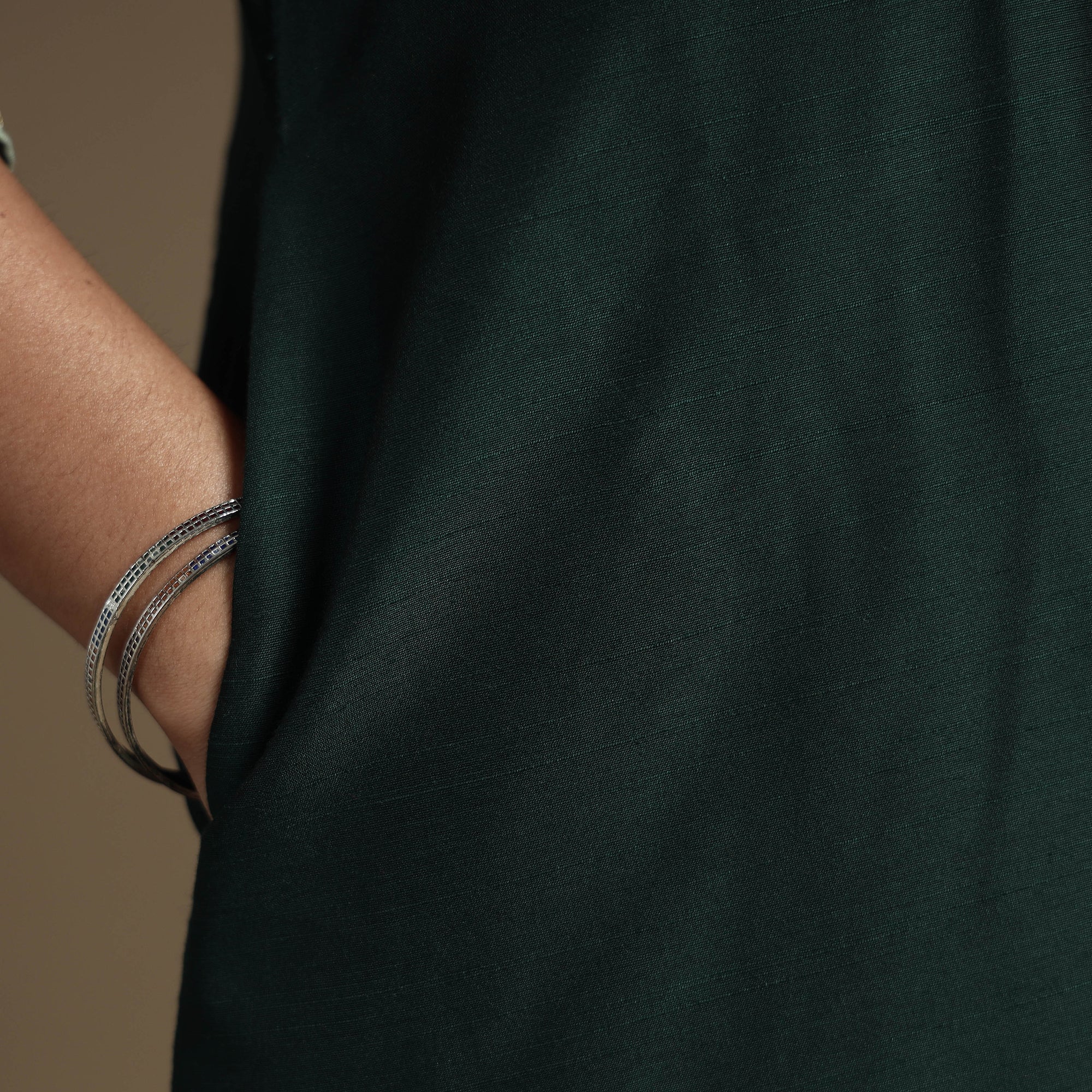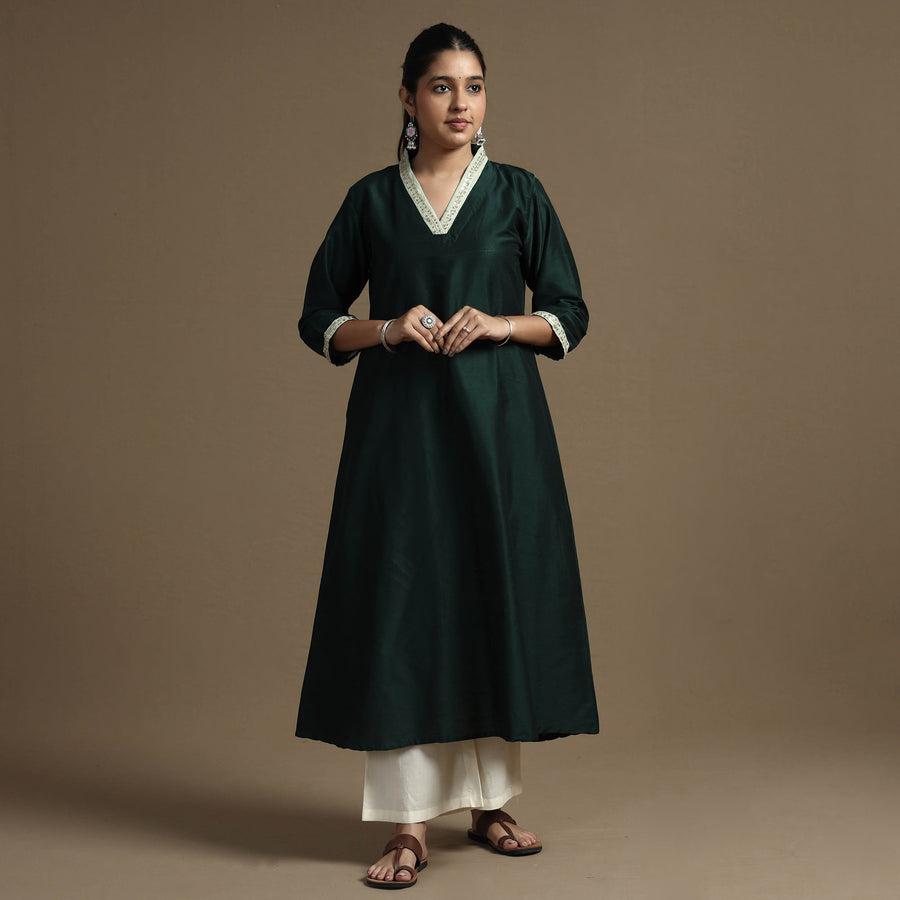 Look and feel beautiful in this uniquely designed plain solid slub silk long kurta. This kurta is crafted from high-quality slub silk fabric, ensuring a luxurious and comfortable feel against your skin. It boasts an exquisite beadwork lace design, adding a touch of elegance to your ensemble. The kurta also features a convenient one-side pocket, perfect for carrying small essentials. It's an ideal choice for both casual and festive occasions.