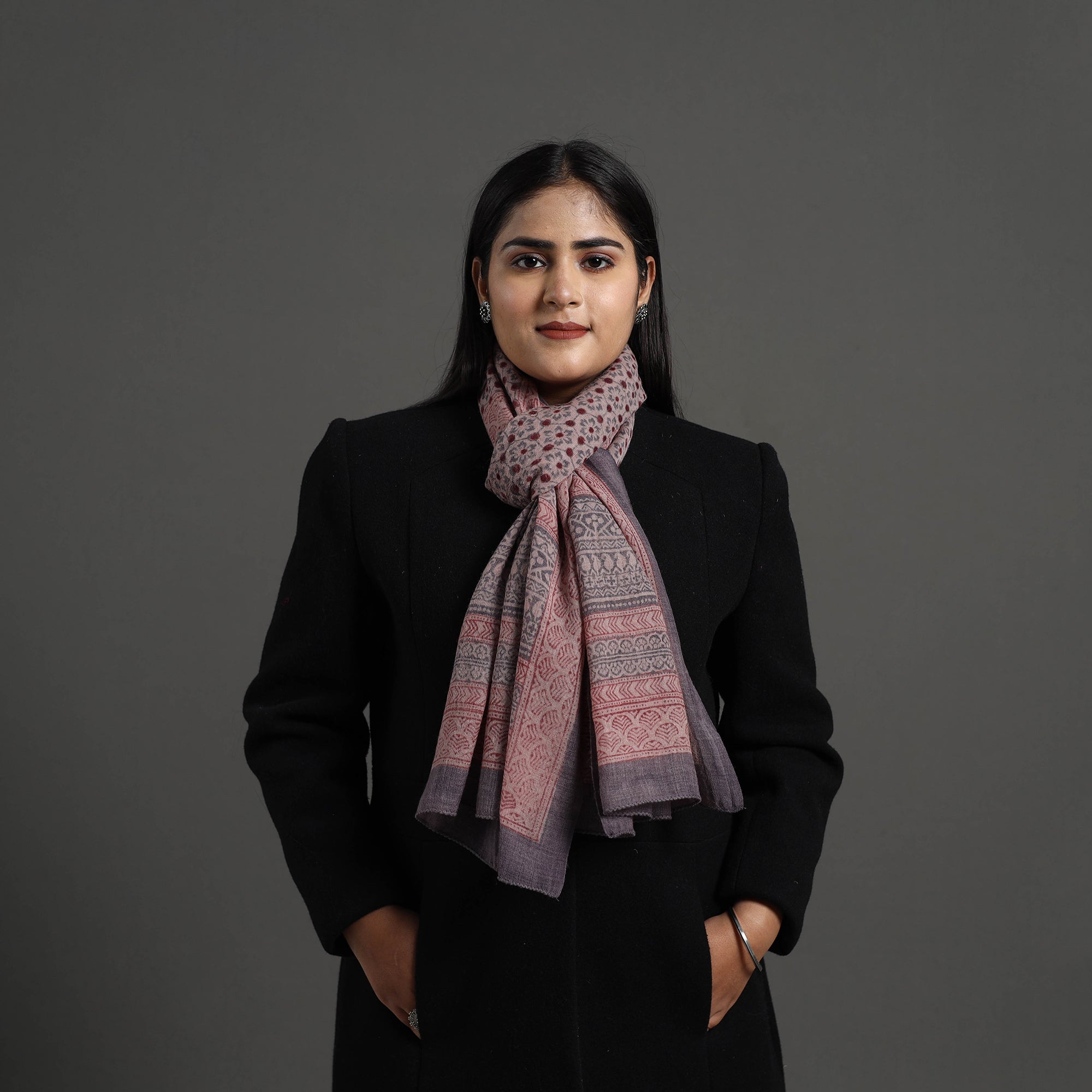 Elevate your style with this fine quality brown bagh hand block printed merino wool stole. This exquisite stole is made using natural dyes through the traditional process of hand block printing by Bilal Khatri in Bagh, the Dhar district of Madhya Pradesh. The merino wool construction offers exceptional warmth and softness, making it perfect for cold weather. This exquisite stole can elevate any outfit. It's versatile, suitable for both formal and casual occasions, adding a touch of traditional Indian artistry to your style.