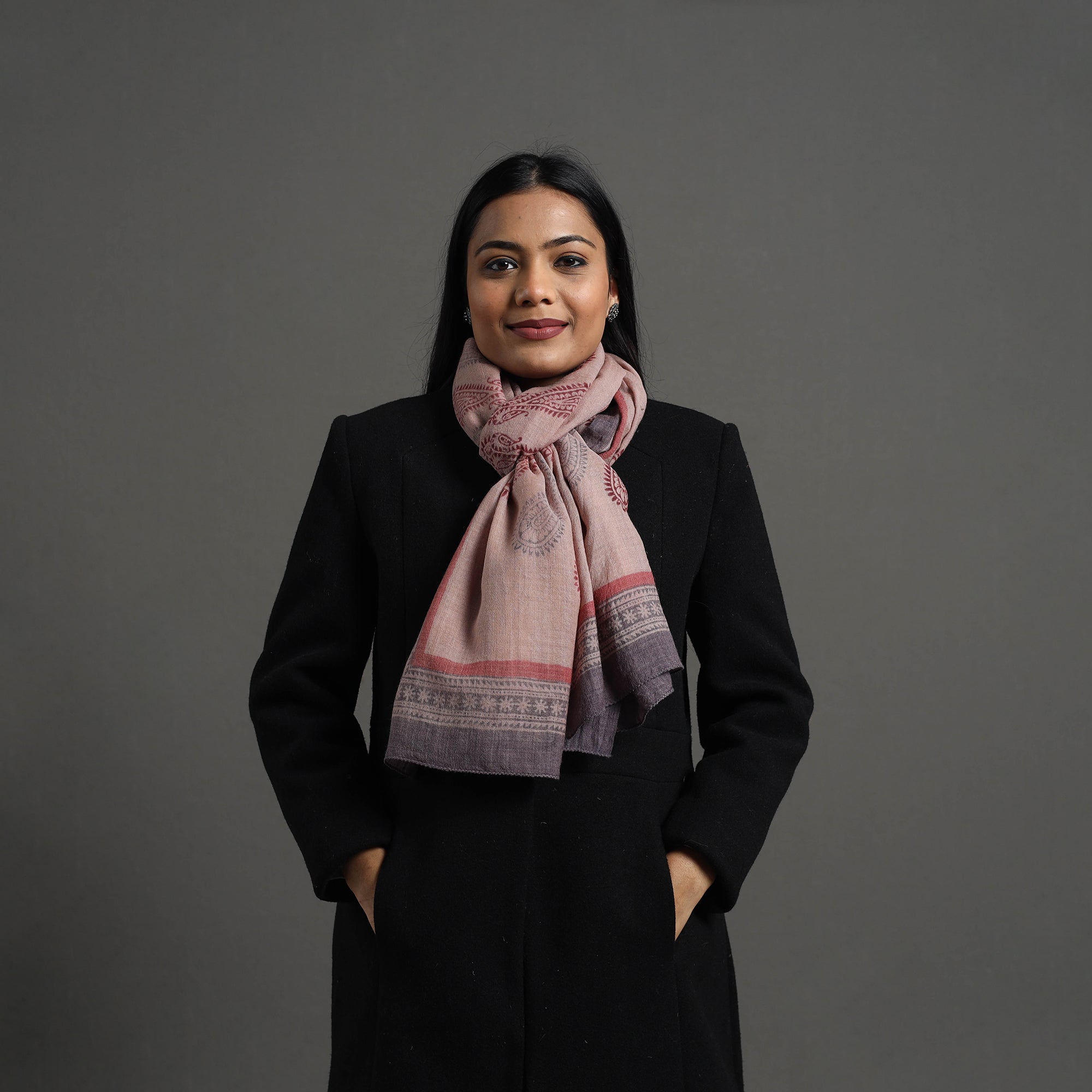 Elevate your style with this fine quality light brown bagh hand block printed merino wool stole. This exquisite stole is made using natural dyes through the traditional process of hand block printing by Bilal Khatri in Bagh, the Dhar district of Madhya Pradesh. The merino wool construction offers exceptional warmth and softness, making it perfect for cold weather. This exquisite stole can elevate any outfit. It's versatile, suitable for both formal and casual occasions, adding a touch of traditional Indian artistry to your style.