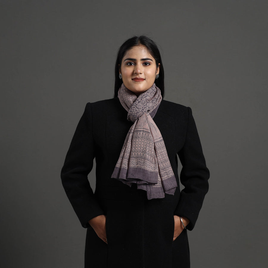 Elevate your style with this fine quality grey bagh hand block printed merino wool stole. This exquisite stole is made using natural dyes through the traditional process of hand block printing by Bilal Khatri in Bagh, the Dhar district of Madhya Pradesh. The merino wool construction offers exceptional warmth and softness, making it perfect for cold weather. This exquisite stole can elevate any outfit. It's versatile, suitable for both formal and casual occasions, adding a touch of traditional Indian artistry to your style.
