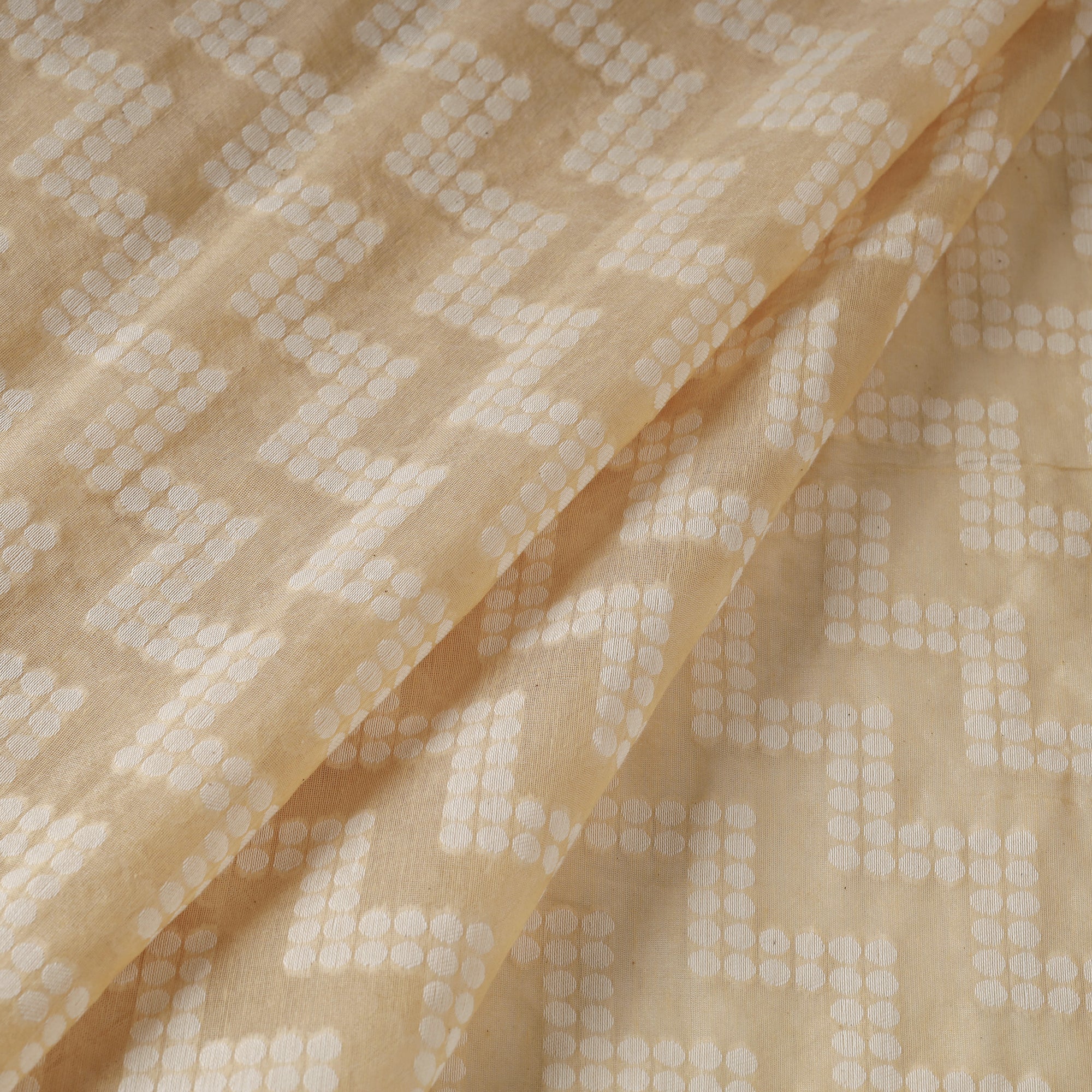 Beige - Pure Handwoven Cutwork Buti Cotton Banarasi Fabric 04