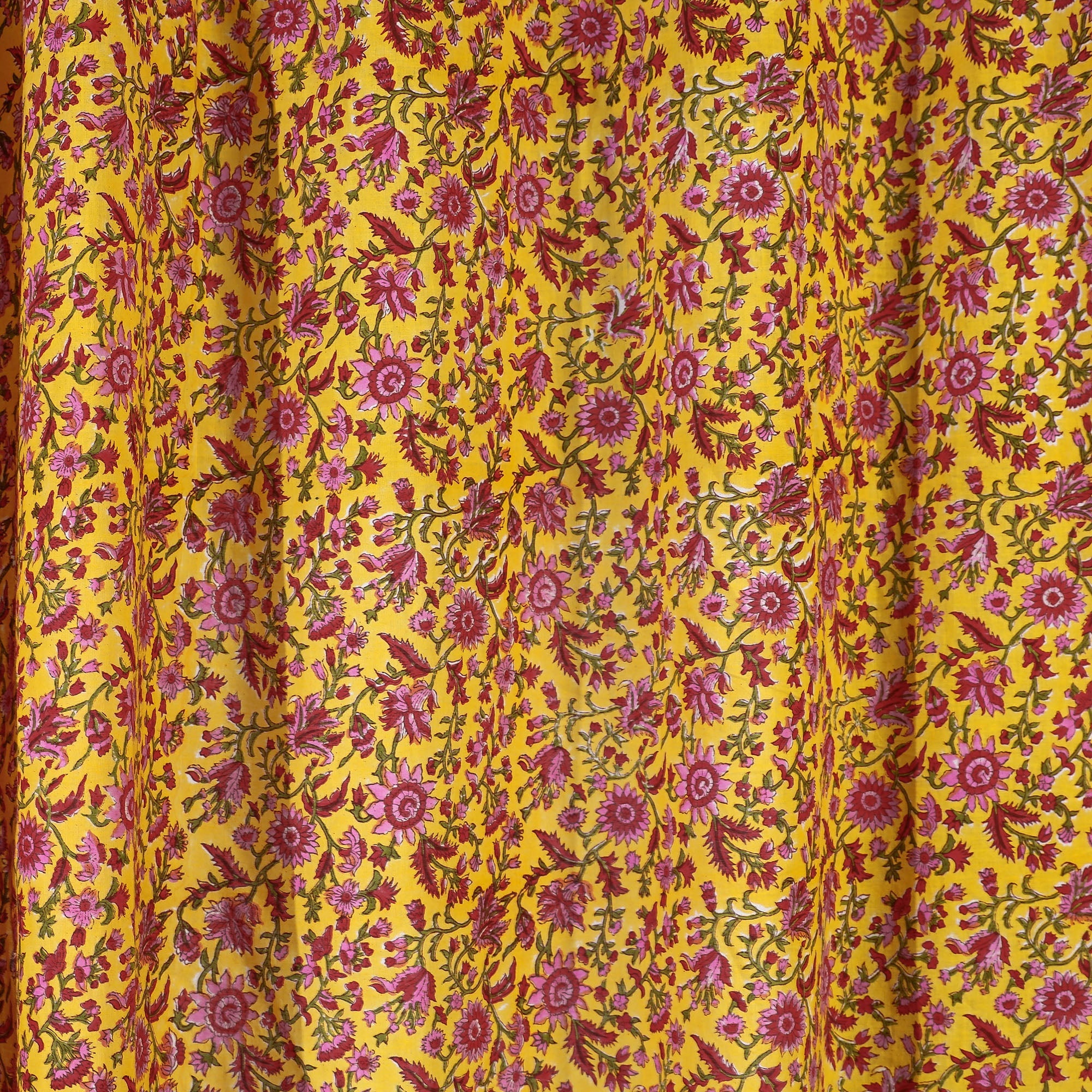 Add a beautiful feel to any room in your house by adding this floral sanganeri block printed cotton door curtain to your exquisite home decor collection. Originating from the vibrant village of Sanganer in Jaipur, Rajasthan, this hand-block printing technique adds a touch of elegance to any room. This curtain showcases intricate floral patterns. Crafted with bleed-free VAT dyes.