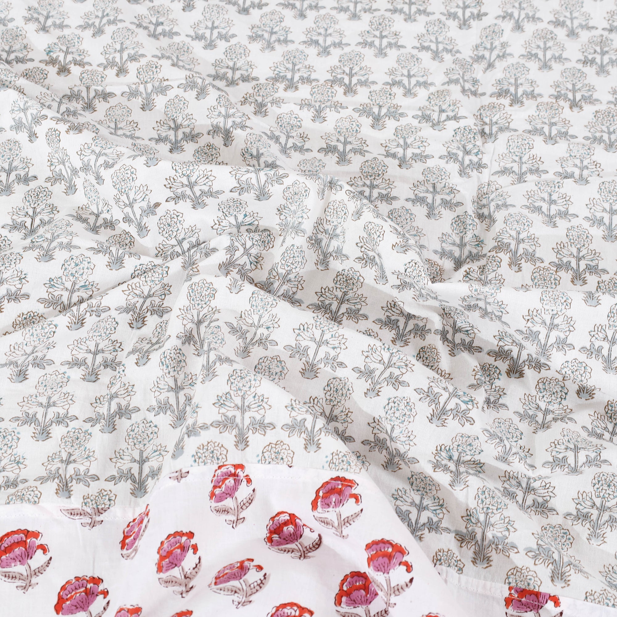 This exquisite Sanganeri Block Printed Patchwork Cotton Bed sheet accompanied by matching pillow covers. This bed cover features the traditional art of Sanganeri block printing, showcasing intricate patterns and vibrant colors. The patchwork design adds an extra layer of artistry, making it a unique and elegant addition to your home. Crafted from high-quality cotton, it offers comfort and style. Add a touch of traditional Indian craftsmanship to your bedroom with this beautiful bed cover and pillow cover set.
