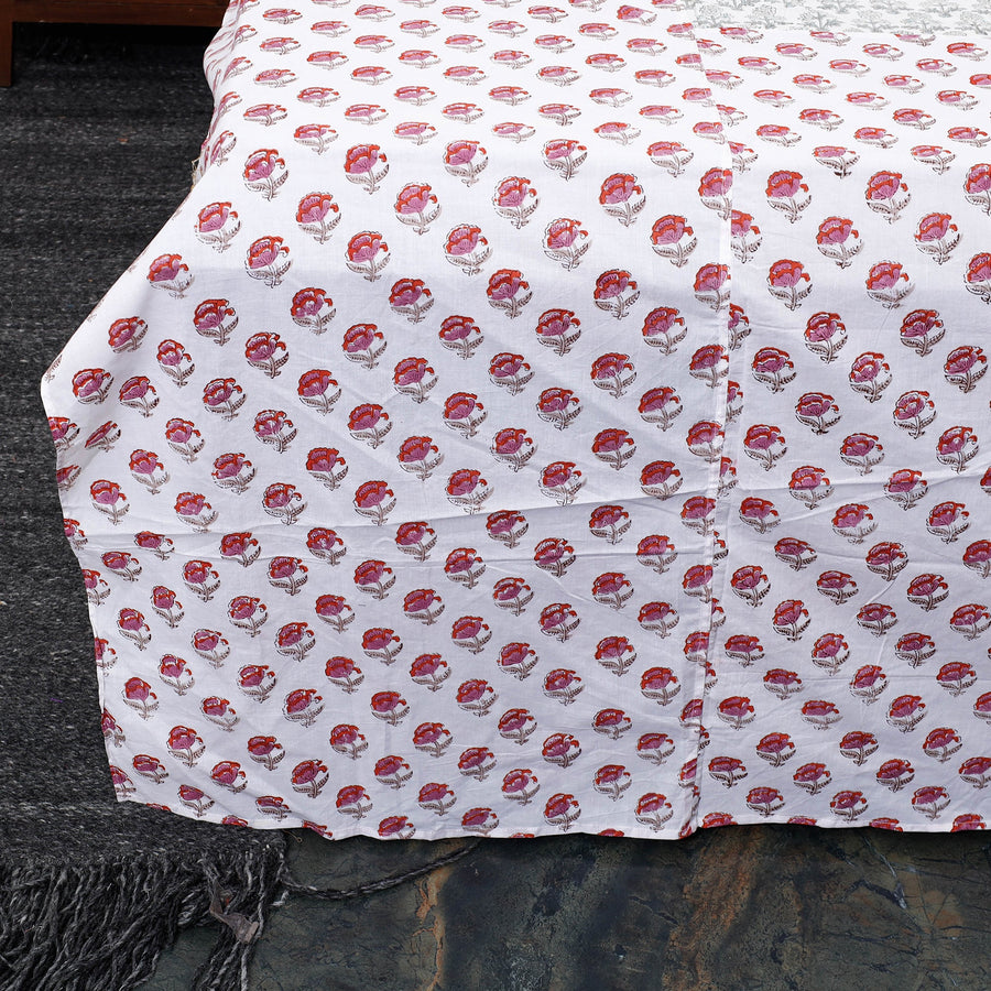 Blue - Block Print Cotton Double Sanganeri Bed Sheet Set (108 x 90 in) 08