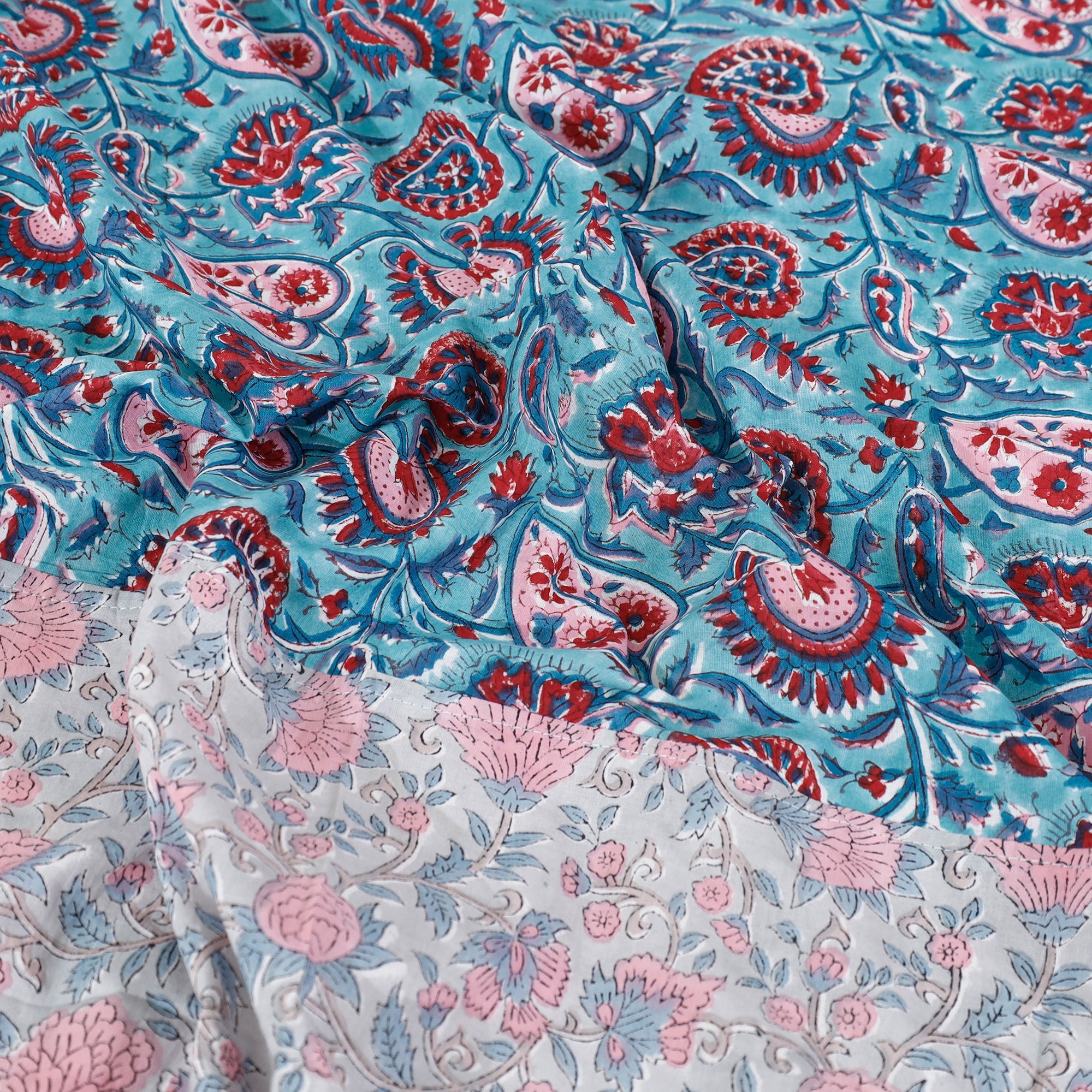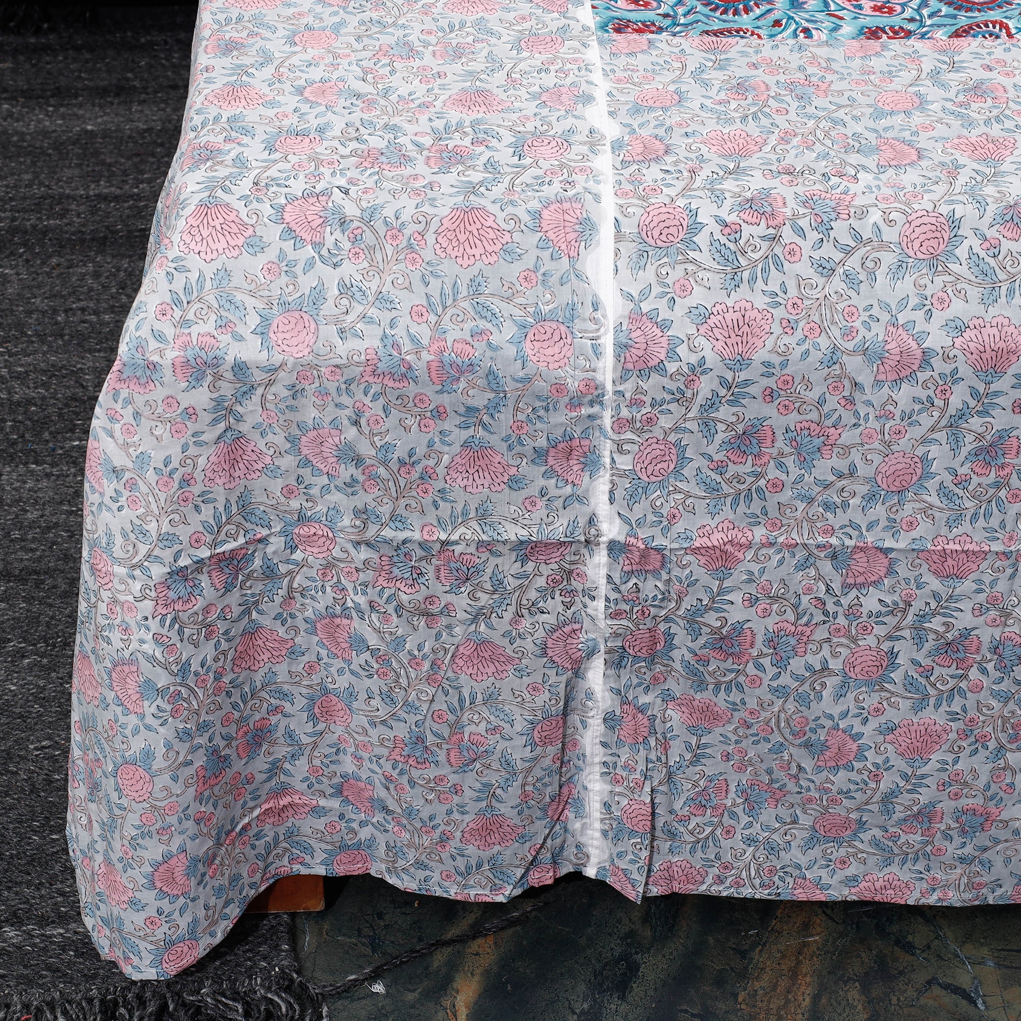 This exquisite Sanganeri Block Printed Patchwork Cotton Bed sheet accompanied by matching pillow covers. This bed cover features the traditional art of Sanganeri block printing, showcasing intricate patterns and vibrant colors. The patchwork design adds an extra layer of artistry, making it a unique and elegant addition to your home. Crafted from high-quality cotton, it offers comfort and style. Add a touch of traditional Indian craftsmanship to your bedroom with this beautiful bed cover and pillow cover set.