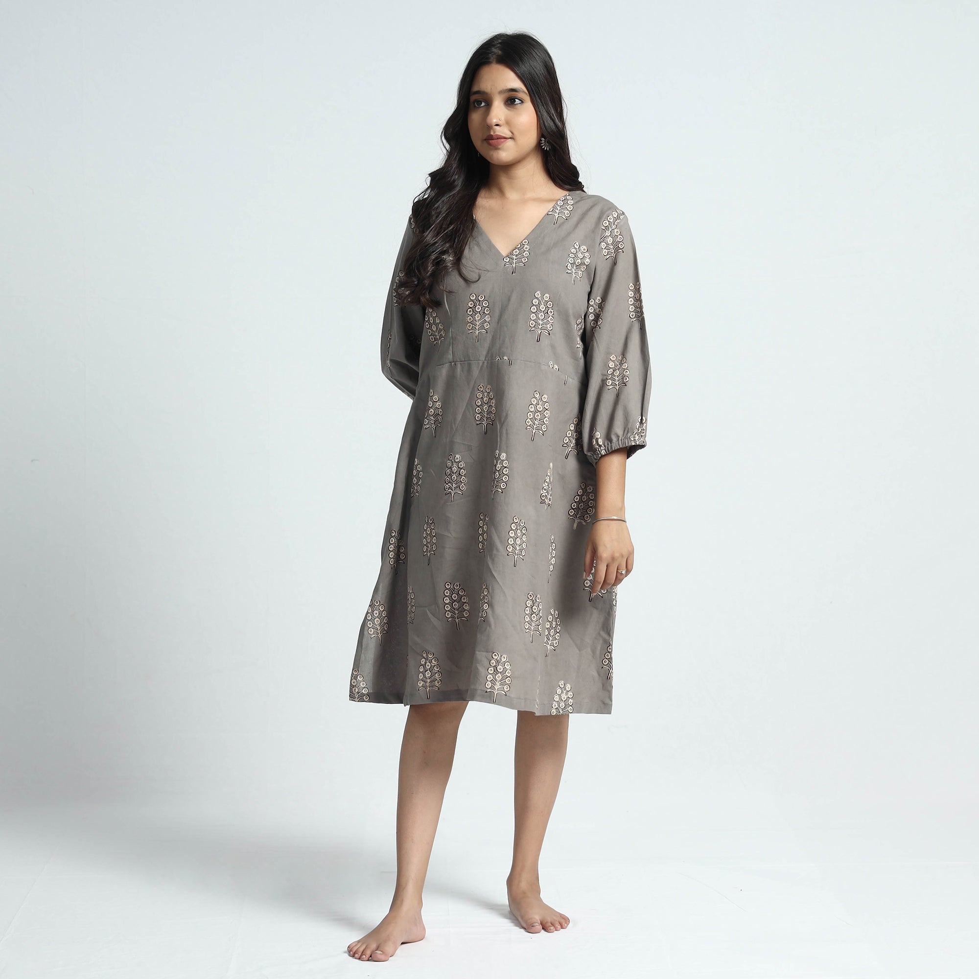 Look and feel beautiful in this uniquely designed nandana hand block printed cotton dress. This exquisite cotton dress makes you comfortable with ease all day long. This dress is perfect for your daily outing and for a special occasion.