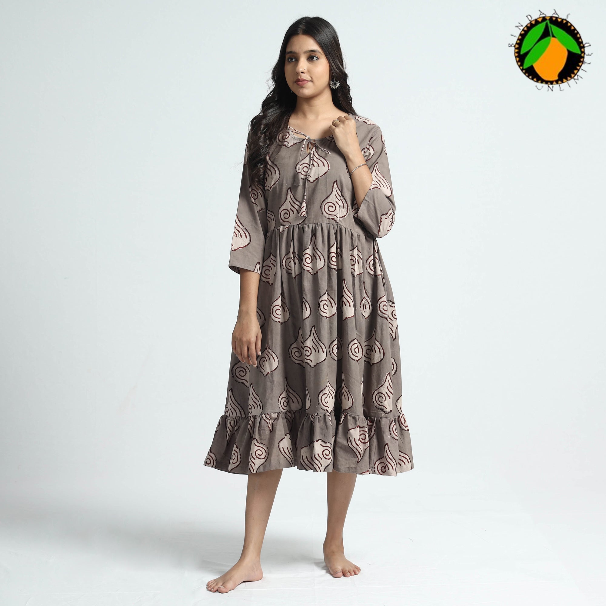 Look and feel beautiful in this uniquely designed bindaas art block printed cotton dress. This exquisite cotton dress makes you comfortable with ease all day long. This dress is perfect for your daily outing and for a special occasion.