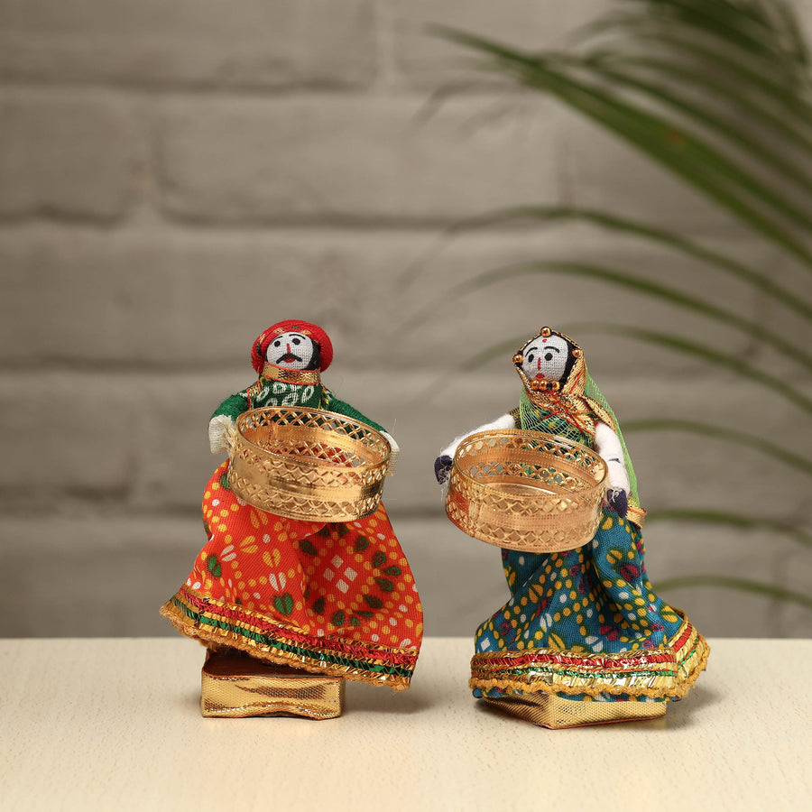 •  Rajasthani Puppet Couple Handmade Tealight Candle Holders (Set of 2)