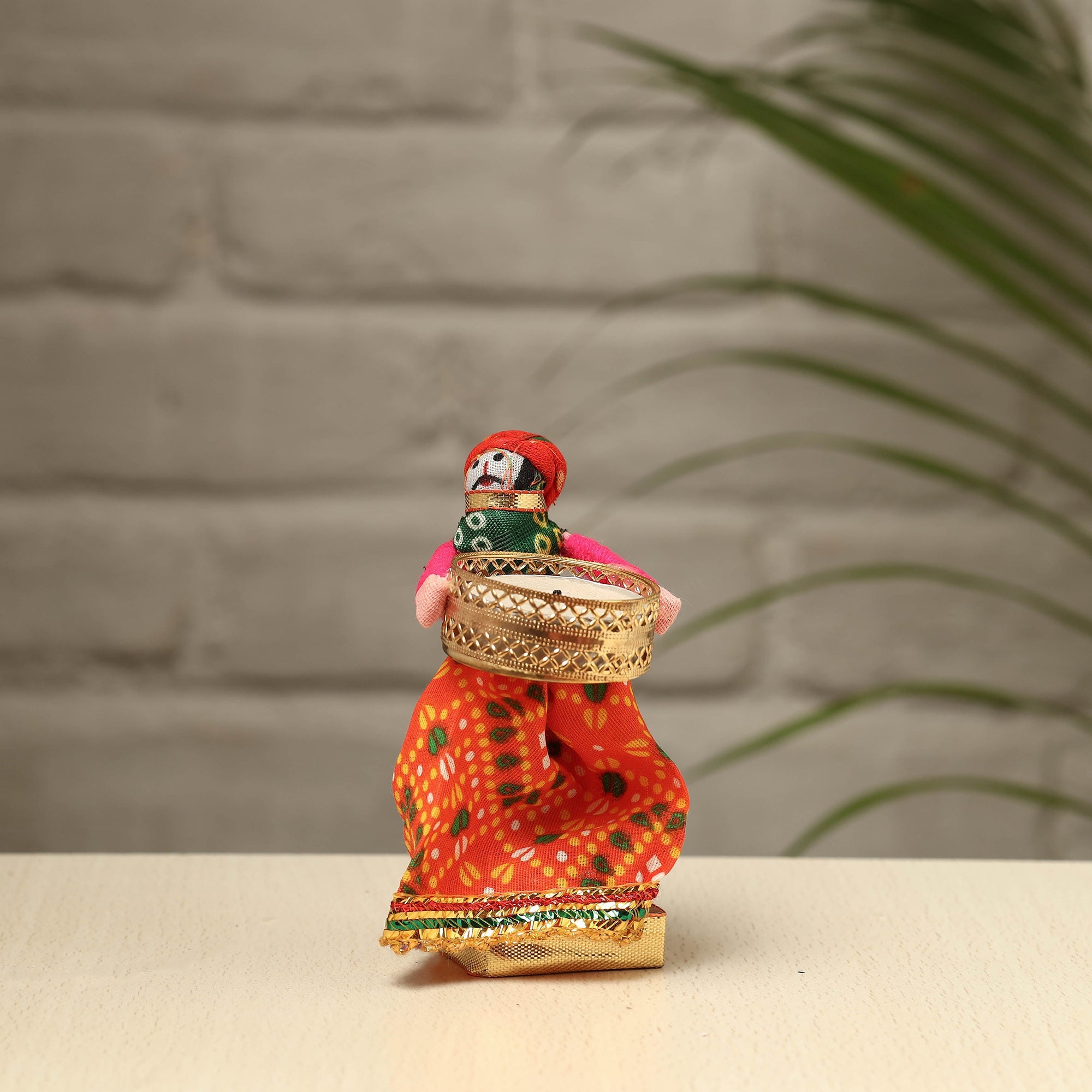 Elevate your decor with our exquisite Rajasthani puppet couple tealight candle holders. Meticulously handcrafted from wood, adorned with vibrant cotton fabric, and embellished with intricate gota patti work, these holders add a touch of Rajasthan's rich heritage to your home. Perfect for creating a warm, inviting ambiance, they're a charming addition to any space and make for a unique gifting option.