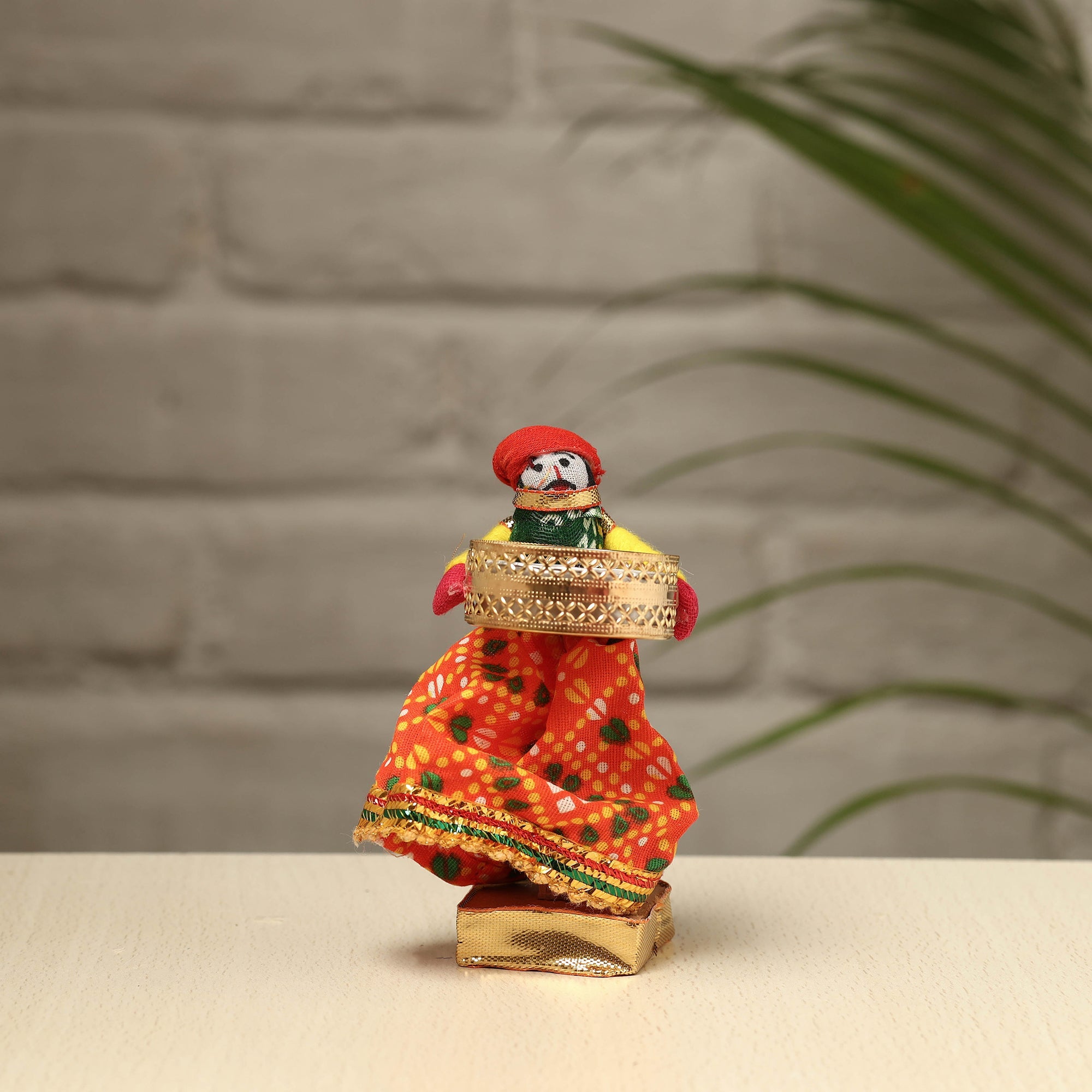 Elevate your decor with our exquisite Rajasthani puppet couple tealight candle holders. Meticulously handcrafted from wood, adorned with vibrant cotton fabric, and embellished with intricate gota patti work, these holders add a touch of Rajasthan's rich heritage to your home. Perfect for creating a warm, inviting ambiance, they're a charming addition to any space and make for a unique gifting option.