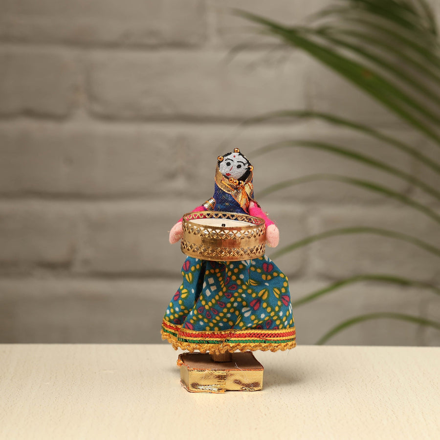 Elevate your decor with our exquisite Rajasthani puppet couple tealight candle holders. Meticulously handcrafted from wood, adorned with vibrant cotton fabric, and embellished with intricate gota patti work, these holders add a touch of Rajasthan's rich heritage to your home. Perfect for creating a warm, inviting ambiance, they're a charming addition to any space and make for a unique gifting option.
