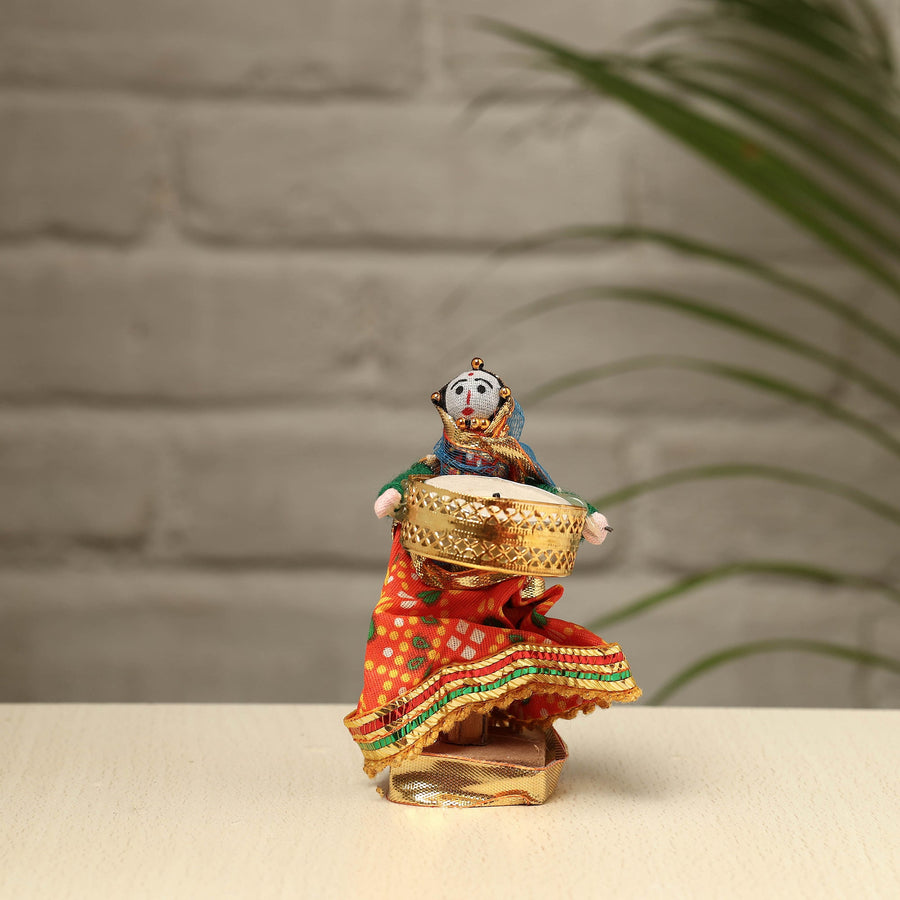 Material Elevate your decor with our exquisite Rajasthani puppet couple tealight candle holders. Meticulously handcrafted from wood, adorned with vibrant cotton fabric, and embellished with intricate gota patti work, these holders add a touch of Rajasthan's rich heritage to your home. Perfect for creating a warm, inviting ambiance, they're a charming addition to any space and make for a unique gifting option.