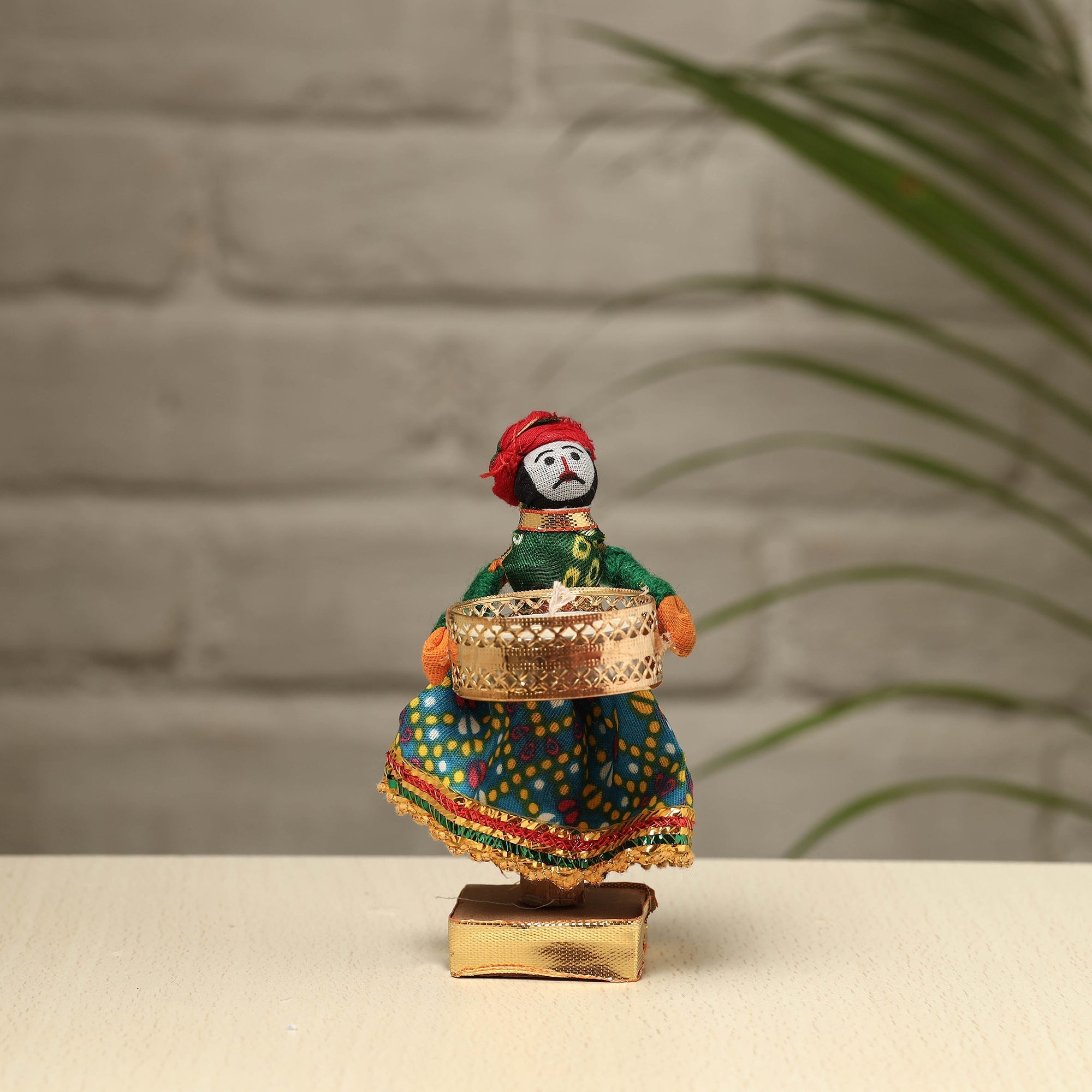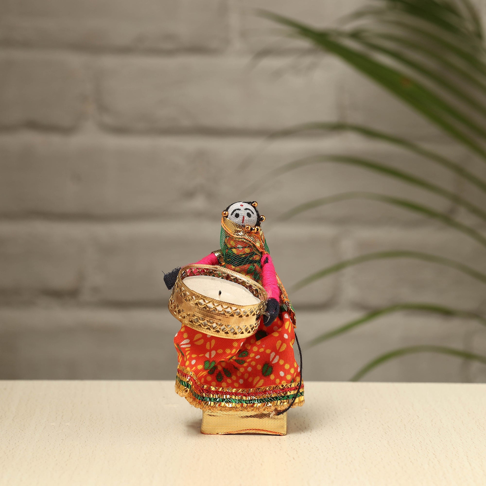 Material Elevate your decor with our exquisite Rajasthani puppet couple tealight candle holders. Meticulously handcrafted from wood, adorned with vibrant cotton fabric, and embellished with intricate gota patti work, these holders add a touch of Rajasthan's rich heritage to your home. Perfect for creating a warm, inviting ambiance, they're a charming addition to any space and make for a unique gifting option.