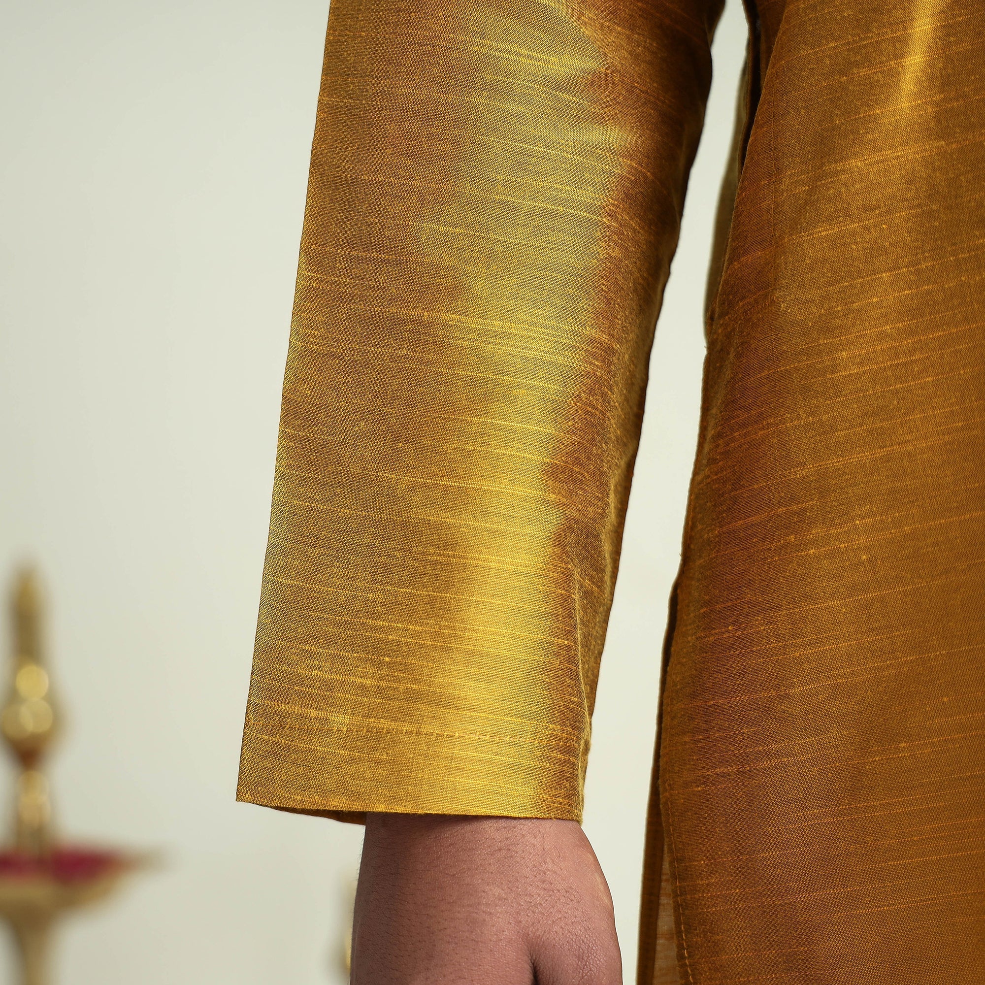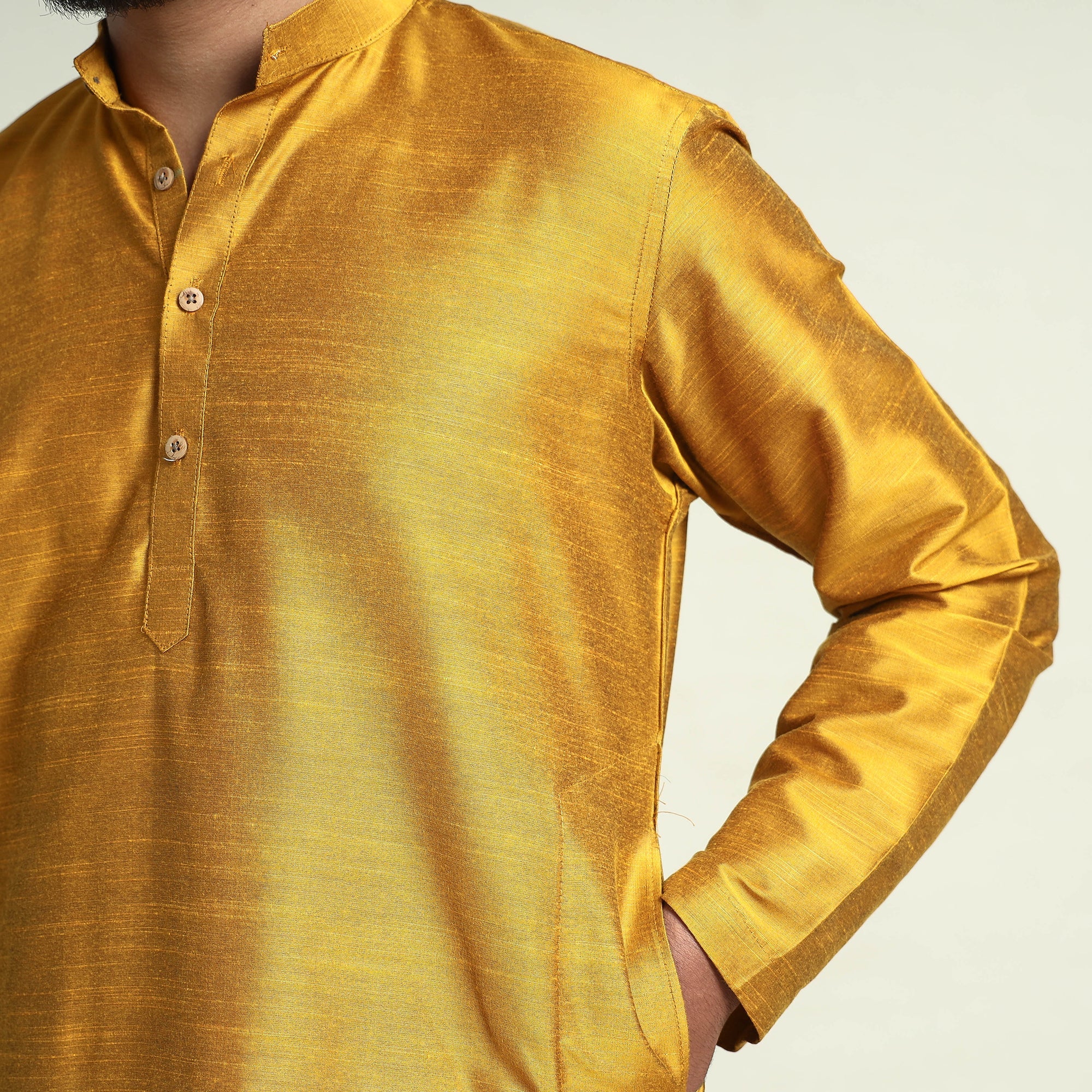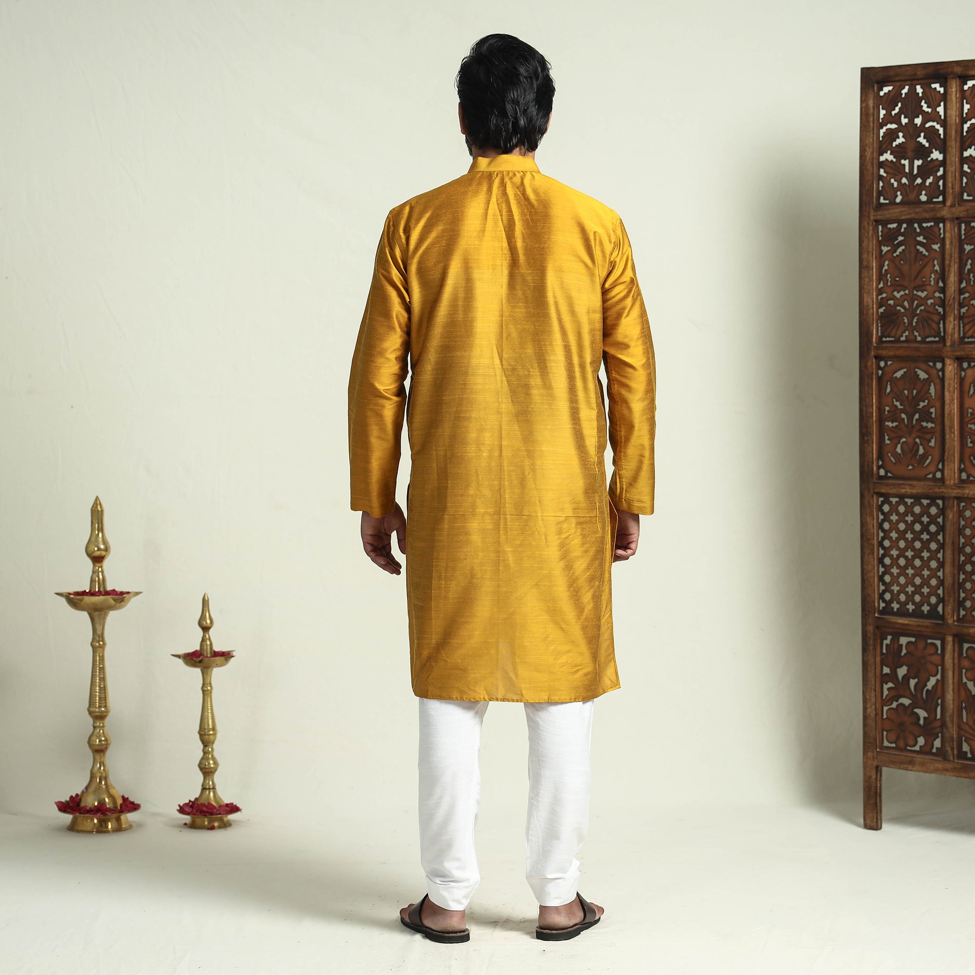 Fine quality plain dyed slub silk men's long kurta with two side pockets makes you comfortable with ease all day long. It's made from plain slub silk fabric and features full sleeves and a chinese collar with a button placket. This casual kurta is perfect for your daily outing and for a special occasion.