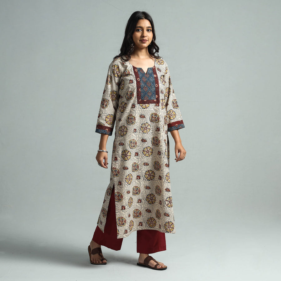 Elevate your style with our exquisite pedana kalamkari block printing cotton long kurta with palazzo set. This set includes a cotton kurta, and plain palazzo. The kurta features a convenient side pocket for added functionality. Made from fine quality cotton, this suit set ensures comfort all day long. Whether it's for your daily outings or a special occasion, this suit set is perfect for making a statement with its unique design and traditional charm. Step out in confidence and style with this stunning kurta set.