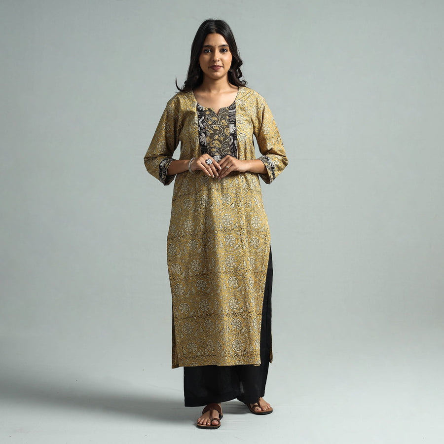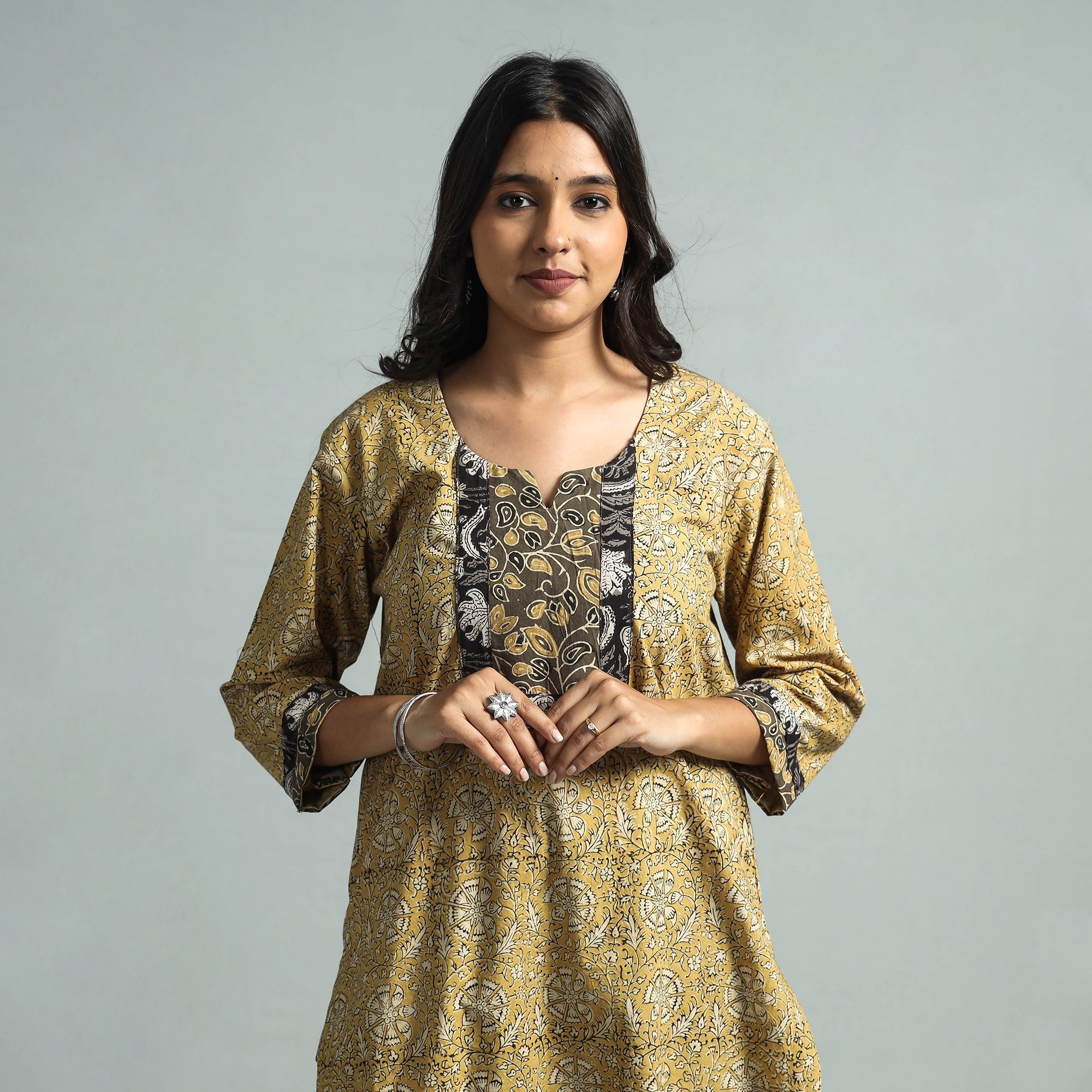 Elevate your style with our exquisite pedana kalamkari block printing cotton long kurta with palazzo set. This set includes a cotton kurta, and plain palazzo. The kurta features a convenient side pocket for added functionality. Made from fine quality cotton, this suit set ensures comfort all day long. Whether it's for your daily outings or a special occasion, this suit set is perfect for making a statement with its unique design and traditional charm. Step out in confidence and style with this stunning kurta set.