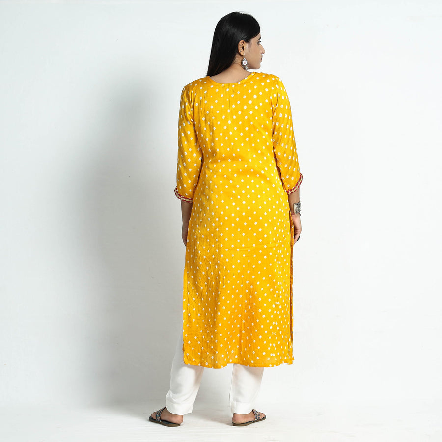 Yellow - Bandhani Tie-Dye Modal Silk Straight Kurta