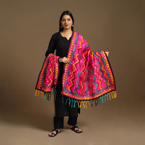 Pink - Ranihati Chapa Work Chanderi Silk Hand Embroidery Dupatta 132