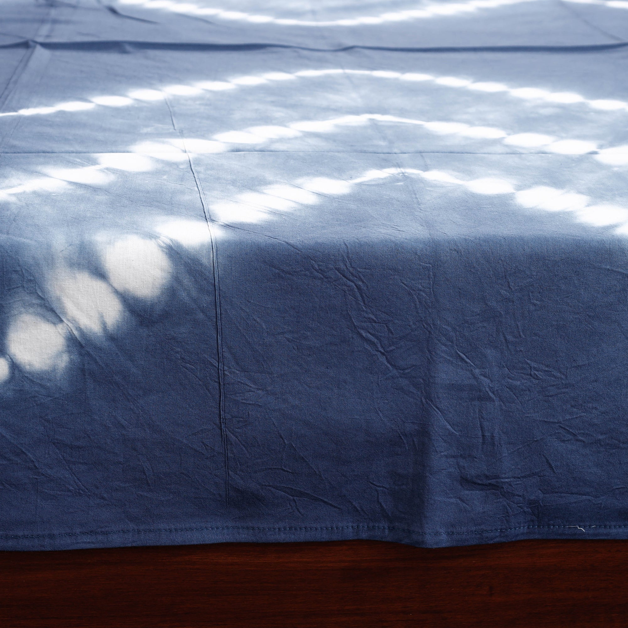 Fine quality blue tie & dye cotton single shibori bed sheet hand dyed using shibori tie and dye technique in which the fabric is tied using clamp or stitches in the required design and the pattern is dyed.