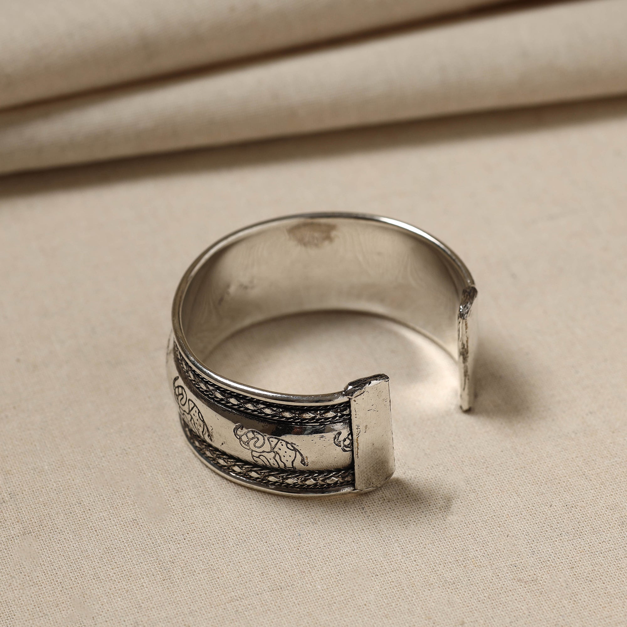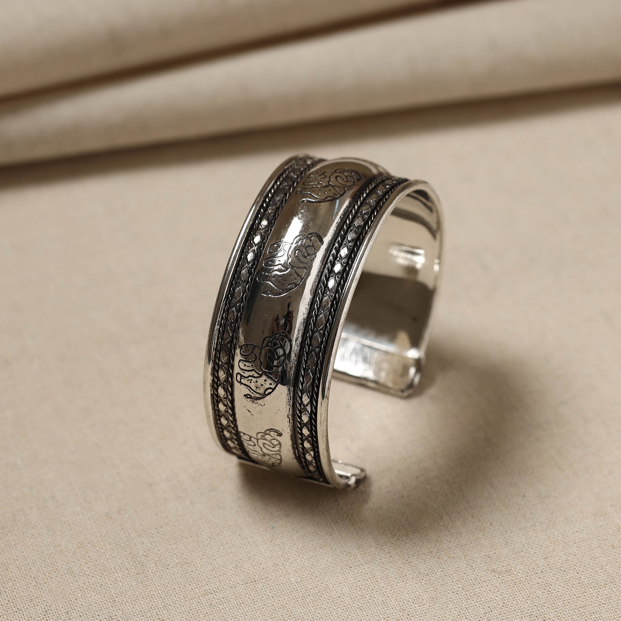 Exquisite antique finish oxidized german silver bangle/cuff bracelet. Crafted with attention to detail, this bracelet features a stunning antique finish that adds a touch of vintage charm to your ensemble. Made from high-quality oxidized german silver, it offers durability and longevity. The intricate design and unique pattern make it a standout piece of jewelry. Whether worn alone or paired with other accessories, this bangle/cuff bracelet is the perfect addition to your jewelry collection, adding a touch of elegance and sophistication to any outfit.