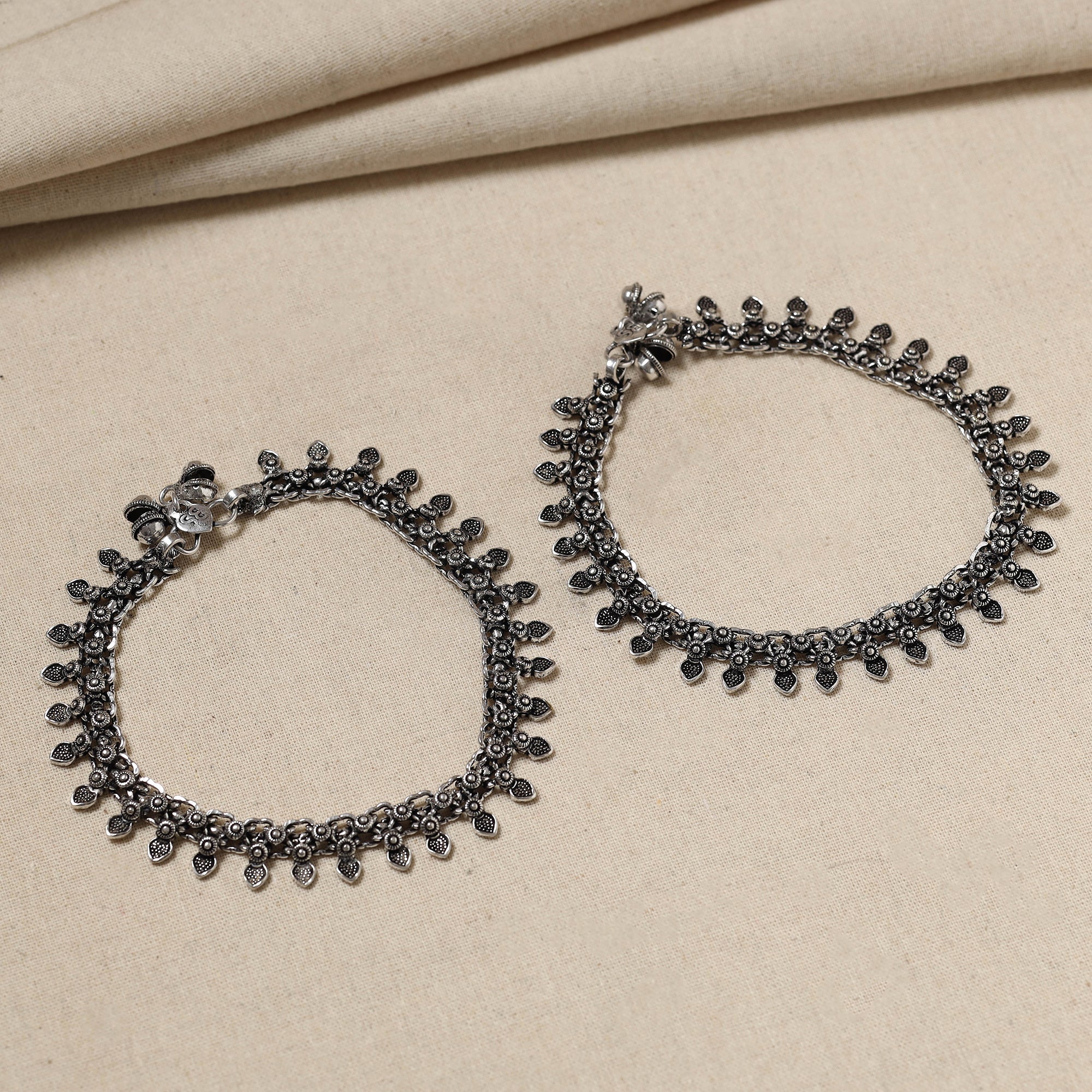 Handcrafted antique finish german silver payal made of high quality oxidised german silver metal with rustic shine effect. These intricately designed anklets are perfect for adding a touch of traditional charm to your outfit, making them ideal for special occasions or everyday wear