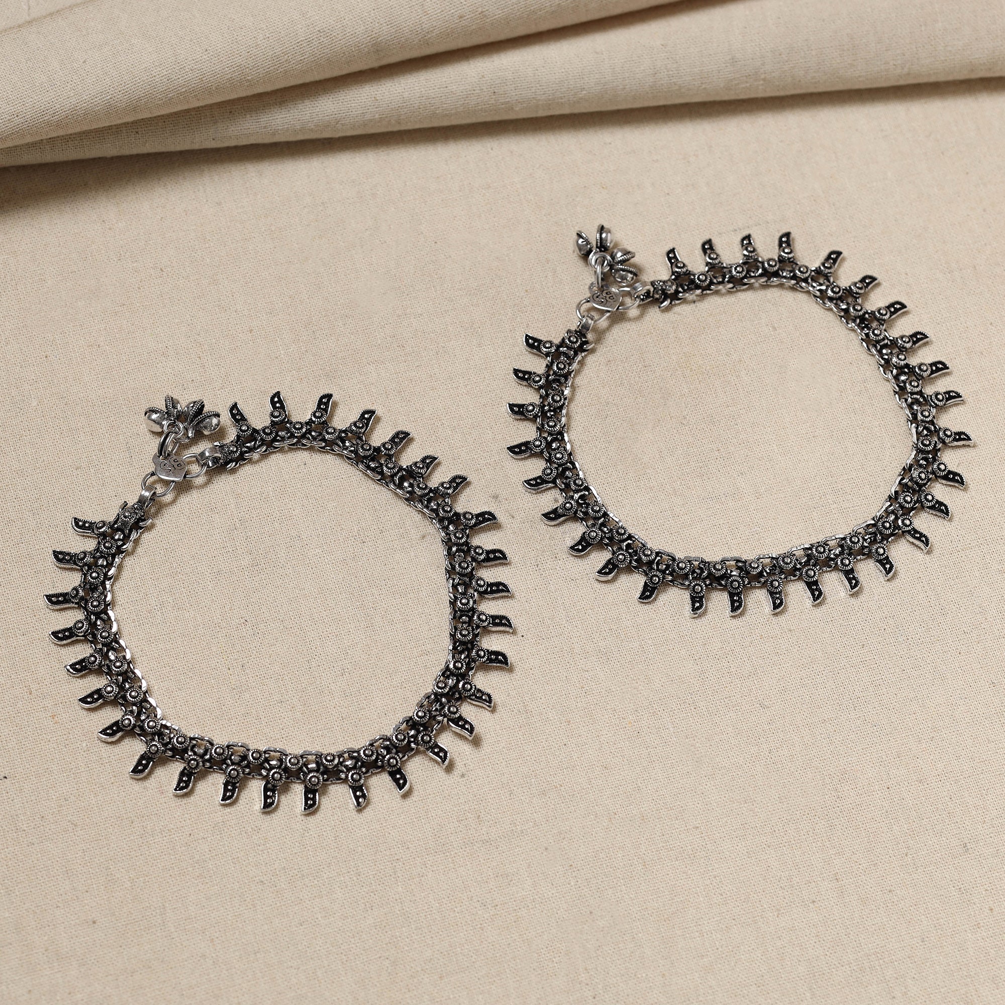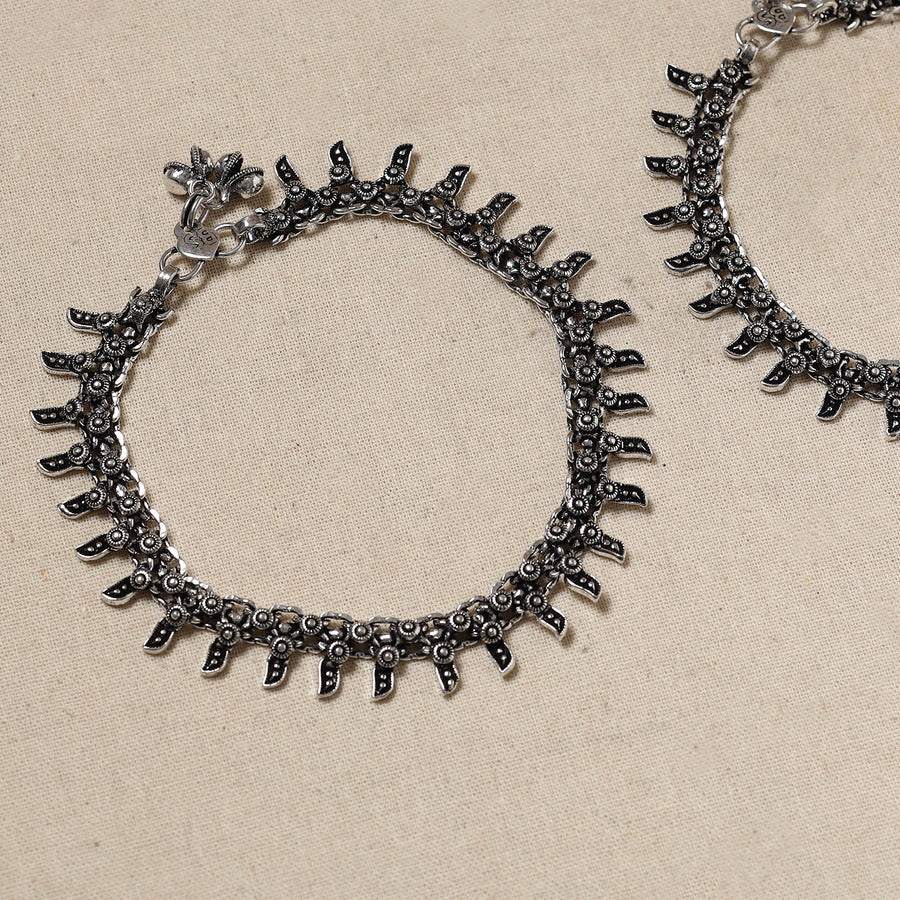 Handcrafted antique finish german silver payal made of high quality oxidised german silver metal with rustic shine effect. These intricately designed anklets are perfect for adding a touch of traditional charm to your outfit, making them ideal for special occasions or everyday wear