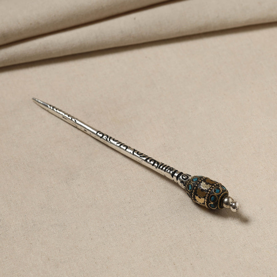 | Material | Elevate your hairstyle with the timeless charm of this antique-finish german silver juda stick, made of high-quality oxidised german silver metal and beads with a rustic shine effect. Crafted with intricate details and a vintage finish, this hair accessory adds a touch of tradition and style to your look. |