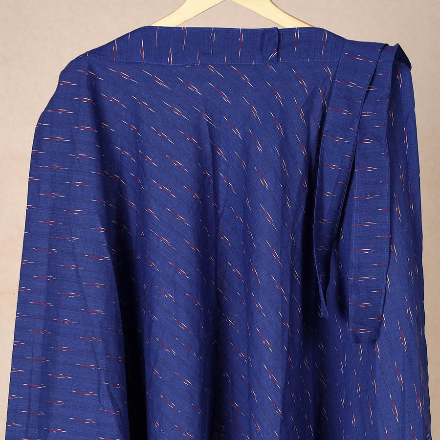 Elevate your style with this fine quality blue pochampally ikat weave pure cotton wrap around skirt. Featuring a waist tie-up closure, this skirt is not only stylish but also comfortable to wear. The ikat (ikkat) dyeing technique used in this skirt creates beautiful patterns and designs, making it a standout piece in your wardrobe. Step out in style with this exquisite pochampally ikat wrap around skirt that showcases the beauty of traditional Indian textiles and craftsmanship.