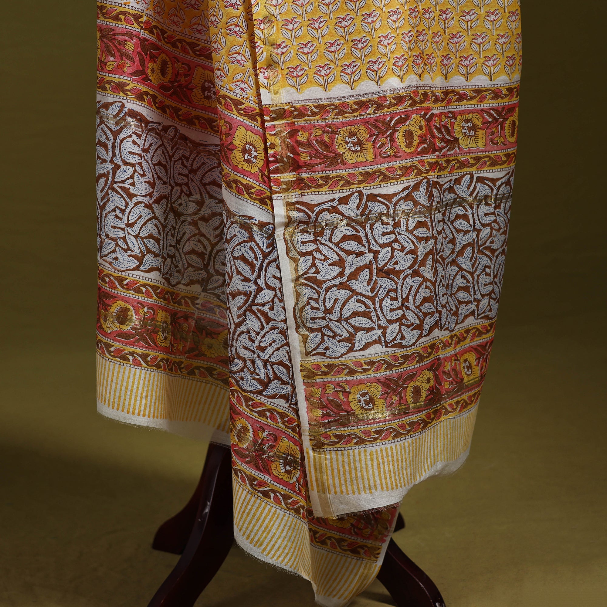 • Yellow - handloom chanderi silk hand sanganeri dupatta 17